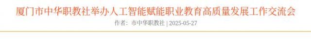 5月23日,厦门市中华职教社在厦门技师学院召开人工智能赋能职业教育高质量发展工作交流会。各团体社员单位负责人工智能工作的分管领导和业务骨干、台湾教师代表共50人参加会议。市中华职教社副主任兼秘书长、二级巡视员翁玉华出席会议并讲话,副主任张培和主持会议。
