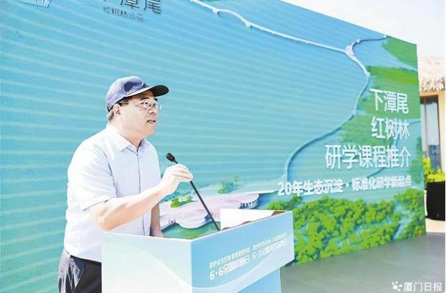 生态为先,科技为擎。下潭尾的变迁离不开厦门市海洋发展局和各区政府、各涉海单位的共同努力,也离不开在厦科研力量的有力支撑。昨天上午,厦门大学环境与生态学院副院长王新红来到广场主题活动现场,娓娓道来,讲述了厦大人作为技术支撑全程参与保护修复下潭尾红树林的动人故事。厦门大学素有“中国红树林研究的黄埔军校”的美称,涌现出了“中国红树林之父”林鹏院士,以及投身红树林保护工作四十余年的卢昌义教授等多位知名专家学者。