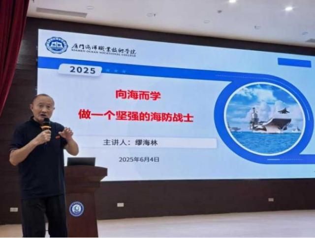 厦门海洋职业技术学院公共教育学院(以下简称厦海职院公教院)正高级工程师、解放军理工大学博士后缪海林老师开展“向海而学,做一个坚强的海防战士” 主题讲座。他从近代中国海防历史讲起,用生动事实讲述今天的人民海军在习近平强军思想指引下正迈步远海作战,建成世界一流海军。从福建号航母下水到055万吨大驱“单刀赴会”逼退美航母,从亚丁湾护航到也门撤侨,从海上国际合作到环澳实弹军演,人民海军已彻底改写近代中国“有海无防”历史,成为捍卫国家海洋主权、安全与发展利益的坚强后盾,鼓励学生要爱党、爱国,热爱人民军队,立志做一个坚强的海防战士。