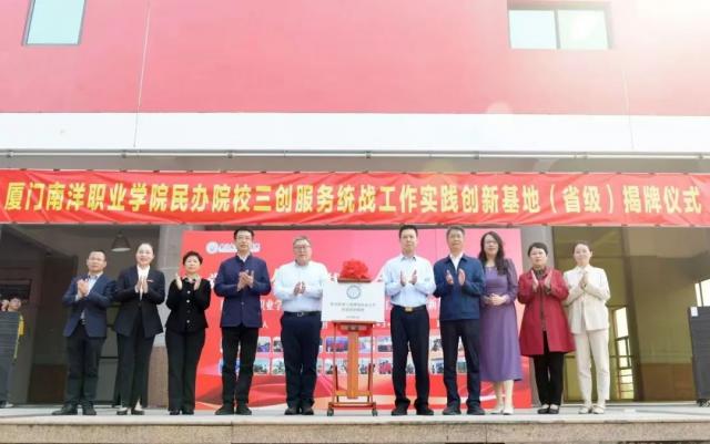 近日,厦门民办院校三创服务统战工作实践创新基地(省级)在厦门南洋职业学院揭牌。该基地秉承“党建引领,统战融合,新阶筑基”核心建设理念,注重培养学生的“三创”能力,着力打造创新型、创业型、开放型的办学特色,与企业合作共建产业学院,培育孵化了多个创业典型案例,并带动了一批大学生深度参与乡村振兴工作,是福建省首家落户于民办院校的新阶基地。