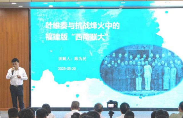 陈为民先生作《叶维奏与抗战烽火中的福建版“西南联大”》主题演讲,集友银行厦门分行向学校捐赠书籍《陈嘉庚与集友银行》