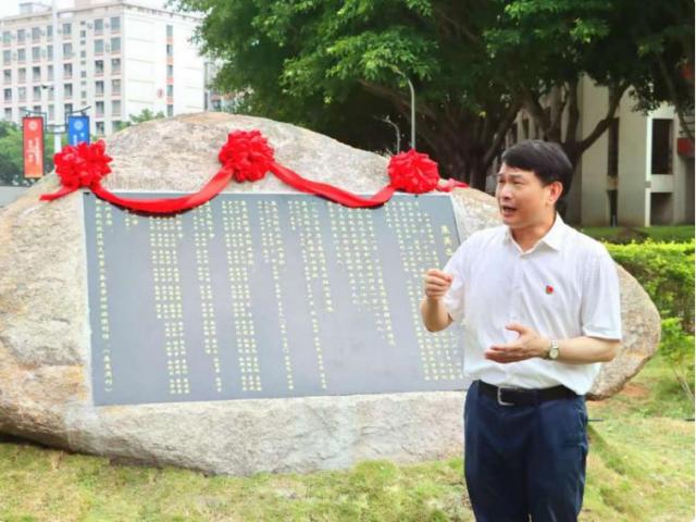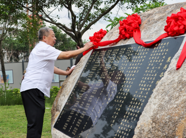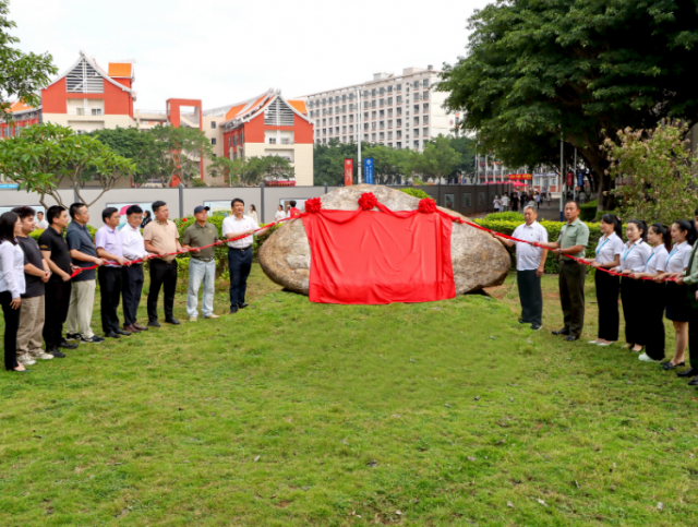 为纪念这段烽火岁月,缅怀抗战从军校友,学校新立校园文化景观。厦门海洋职业技术学院党委书记陈一端,国家级抗战遗址大田“第二集美学村”志愿服务队领军人、中国最美文物安全守护人范立洋,集友银行厦门分行市场总监丁素琴,集友银行厦门分行华侨金融部副总经理陈为民以及学校校友代表、大田“第二集美学村”志愿者代表共同为“集美各校从军员生名录”石刻揭幕。