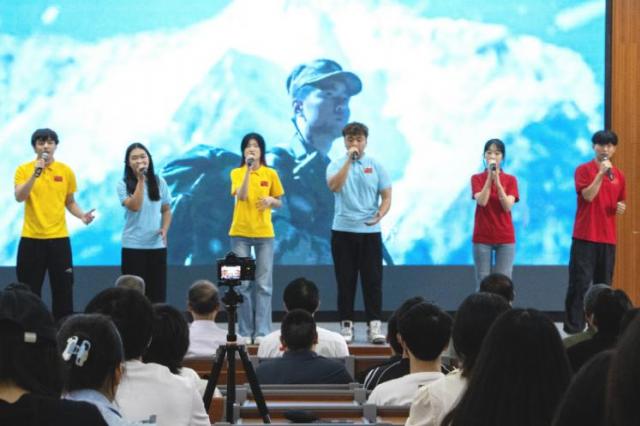 厦门海洋职业技术学院党委书记陈一端为学生上主题微团课。正值纪念抗日战争胜利80周年之际,他深切期望新团员弘扬红色文化,传承抗战精神,勇担时代重任。他以学校优秀师生前辈为例,激励新团员积极锤炼本领,为祖国发展贡献青春力量。