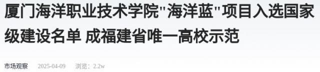 近日,教育部公布了《2025年度高校思想政治工作质量提升综合改革与精品建设项目入选名单的通知》,厦门海洋职业技术学院“海洋蓝”学生身心素质训练基地项目成功入选“全国高校学生身心素质训练项目建设名单”,成为福建省唯一入选的高校,标志着学校在国家级教育平台建设项目上取得突破性进展。
