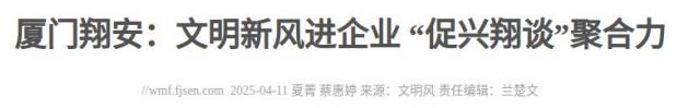 文明风4月11日讯 4月9日,由厦门市翔安区委文明办主办的“福小宣促兴翔谈”主题活动在工创集团(厦门)产业园举行。活动紧扣“民营经济扬帆、乡风文明铸魂、数字转型赋能”主题,搭建起政-企-社对话平台,共同探寻清朗政风护航发展、数字动能激活就业、文明乡风浸润企业的翔安实践。