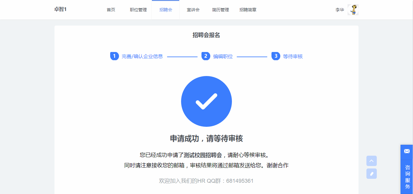 (2)在招聘会详情页面,点击【报名招聘会】,开始报名。