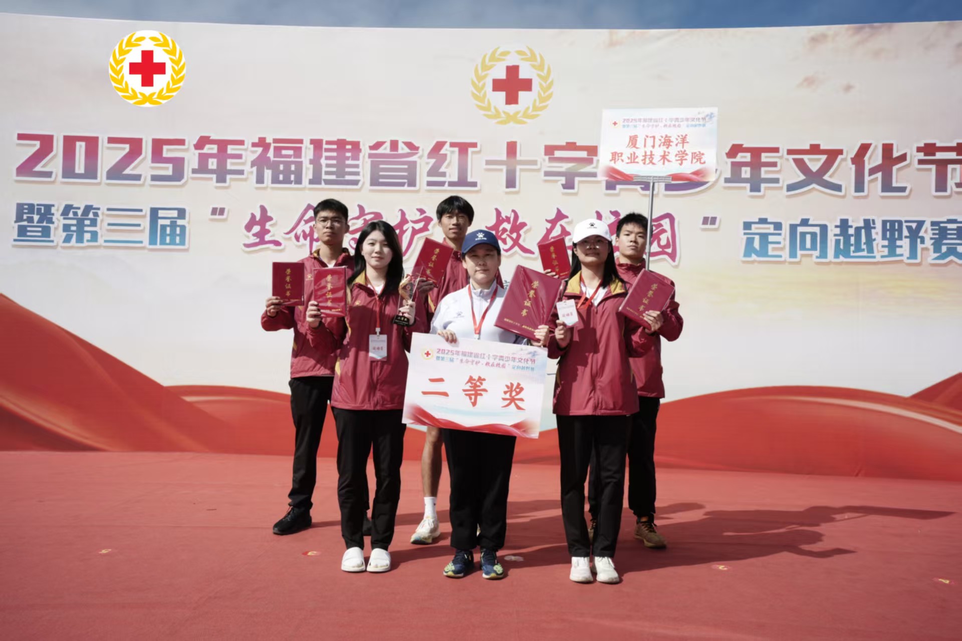 11月30日,由福建省红十字会、福建省教育厅联合主办的2025年福建省红十字青少年文化节暨第三届“生命守护·救在校园”定向越野赛在龙岩技师学院圆满落幕。本次赛事共吸引全省36所高校代表队同场竞技,厦门海洋职业技术学院代表队凭借扎实的应急救护技能和出色的团队协作表现,以全省第四名的成绩荣获二等奖。