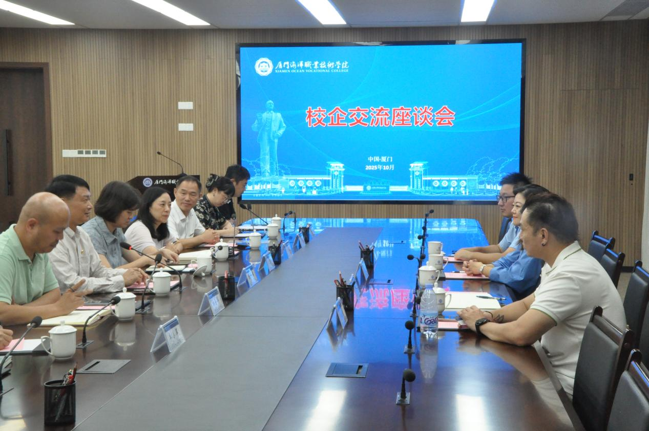 签约授牌后,召开了邮轮产业校企交流座谈会。陈一端指出,邮轮产业是厦门市重点培育和发展的新兴产业,学校始终坚持服务国家战略、服务地方经济发展,服务海洋办学定位,全面构建“大海洋”特色专业体系,此次与爱达邮轮的合作标志着我校在邮轮产业人才培养领域迈出了坚实一步,将为区域邮轮经济高质量发展注入新的活力。他还结合自己的工作经历,从文旅融合、滨海休闲服务、特色专业建设等方面,进一步明确了我校邮轮人才培养的方向和目标。海洋文化与旅游学院介绍了我校国际邮轮乘务管理专业建设情况;2025级邮轮专业学生代表表达了对未来职业前景的期盼;与会企业代表提出了进一步深化校企合作的意向,并对我校在促进邮轮事业发展、服务社会等方面的贡献表示赞赏;学校各职能部门表态将合力保障校企合作顺利推进。