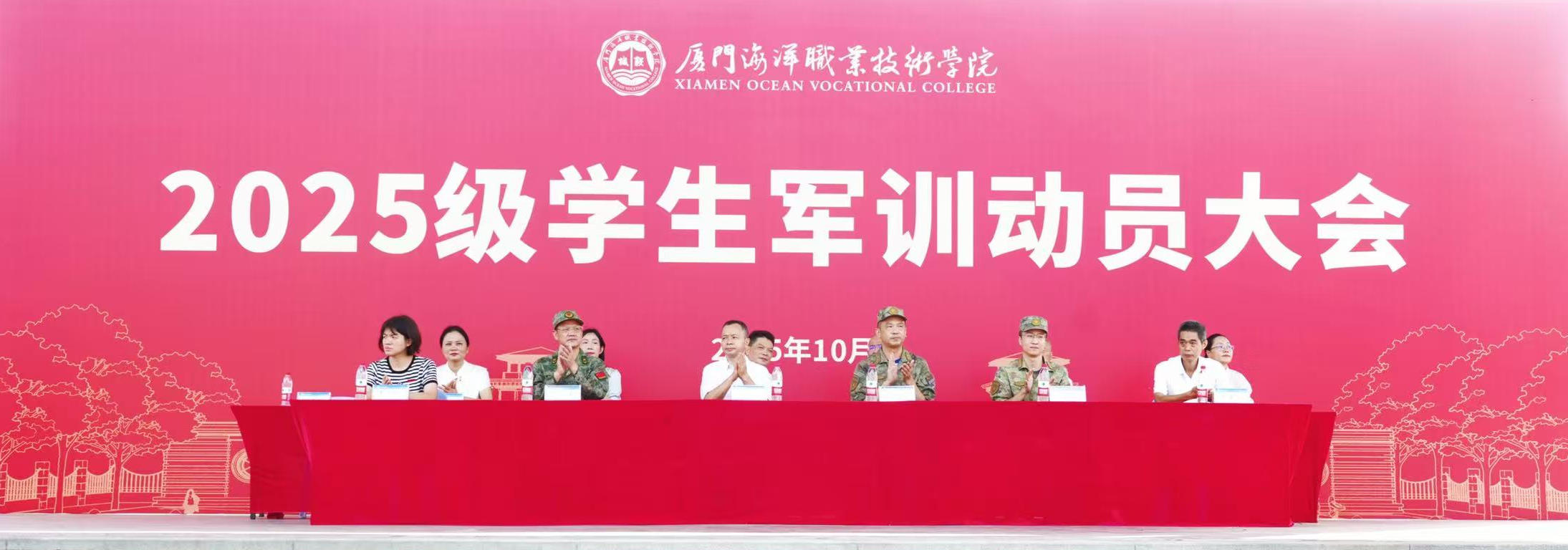 金秋送爽,风展旗扬。10月13日上午,我校2025级新生军训动员大会分别在翔安、思明两校区举行。翔安区人民武装部中校副部长张振刚,思明人武部政治工作科科长宋晨,厦门警备区战备建设处参谋江昌桂应邀参加大会,全体在家校领导出席。2025级全体新生身着崭新戎装,精神抖擞、目光如炬,以饱满的精神、昂扬的斗志迎接军训“第一声号角”,正式开启淬火成钢的成长之旅。