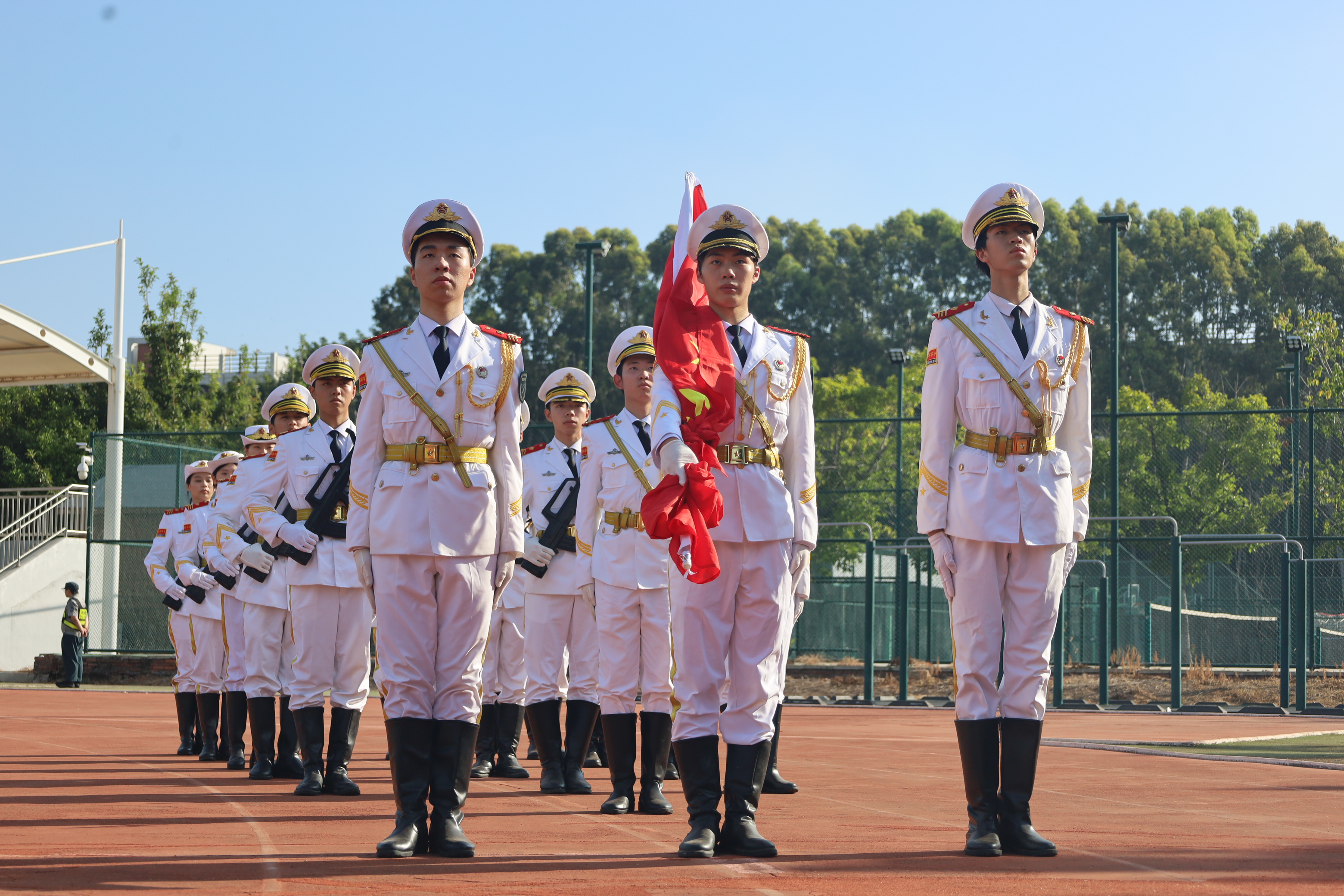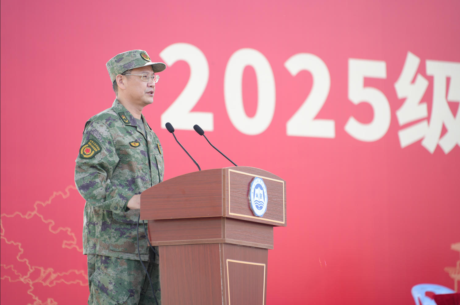 相关职能部门领导、各二级院党总支负责人、新生班辅导员、承训部队官兵及全体新生参加仪式。