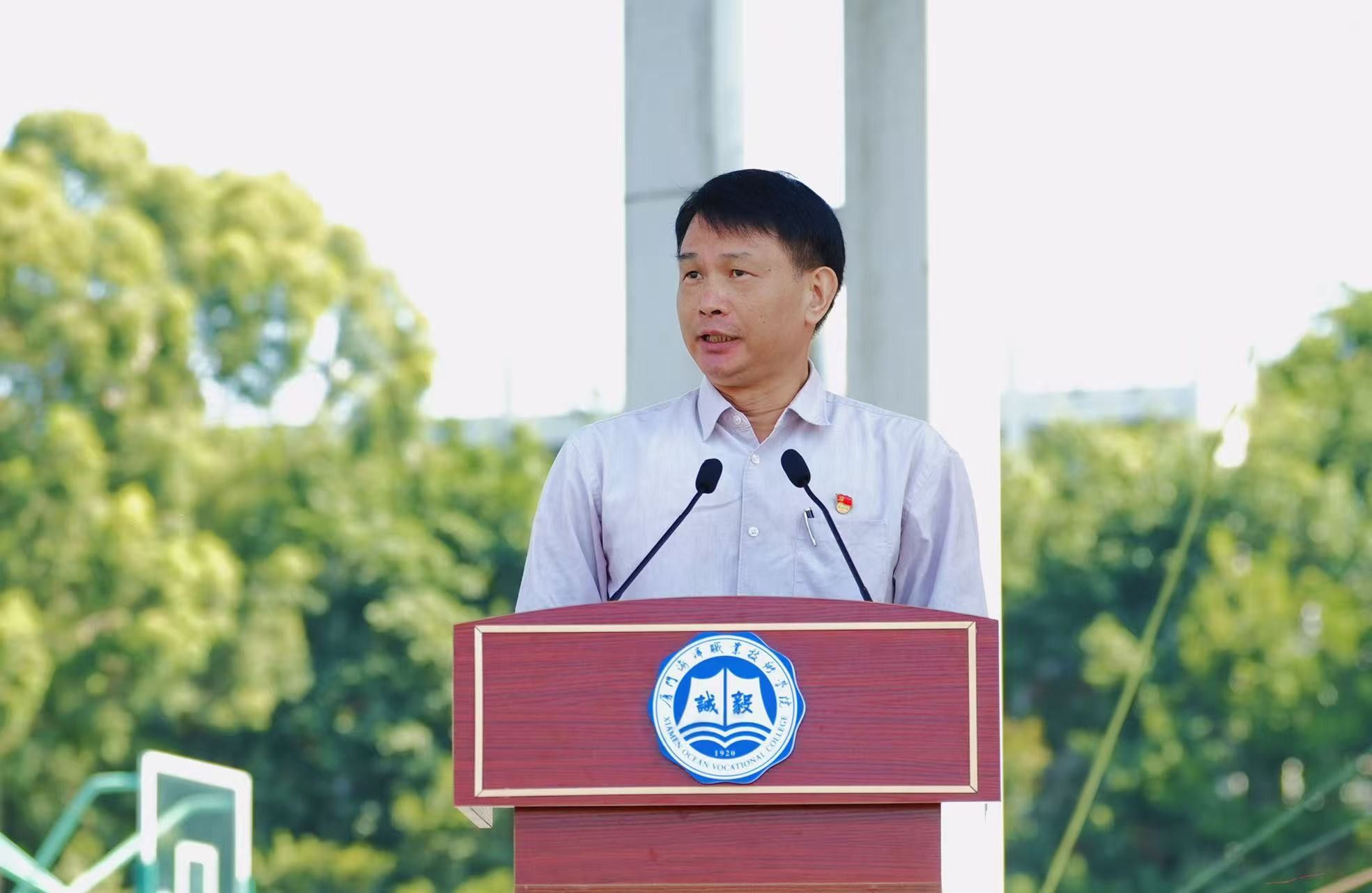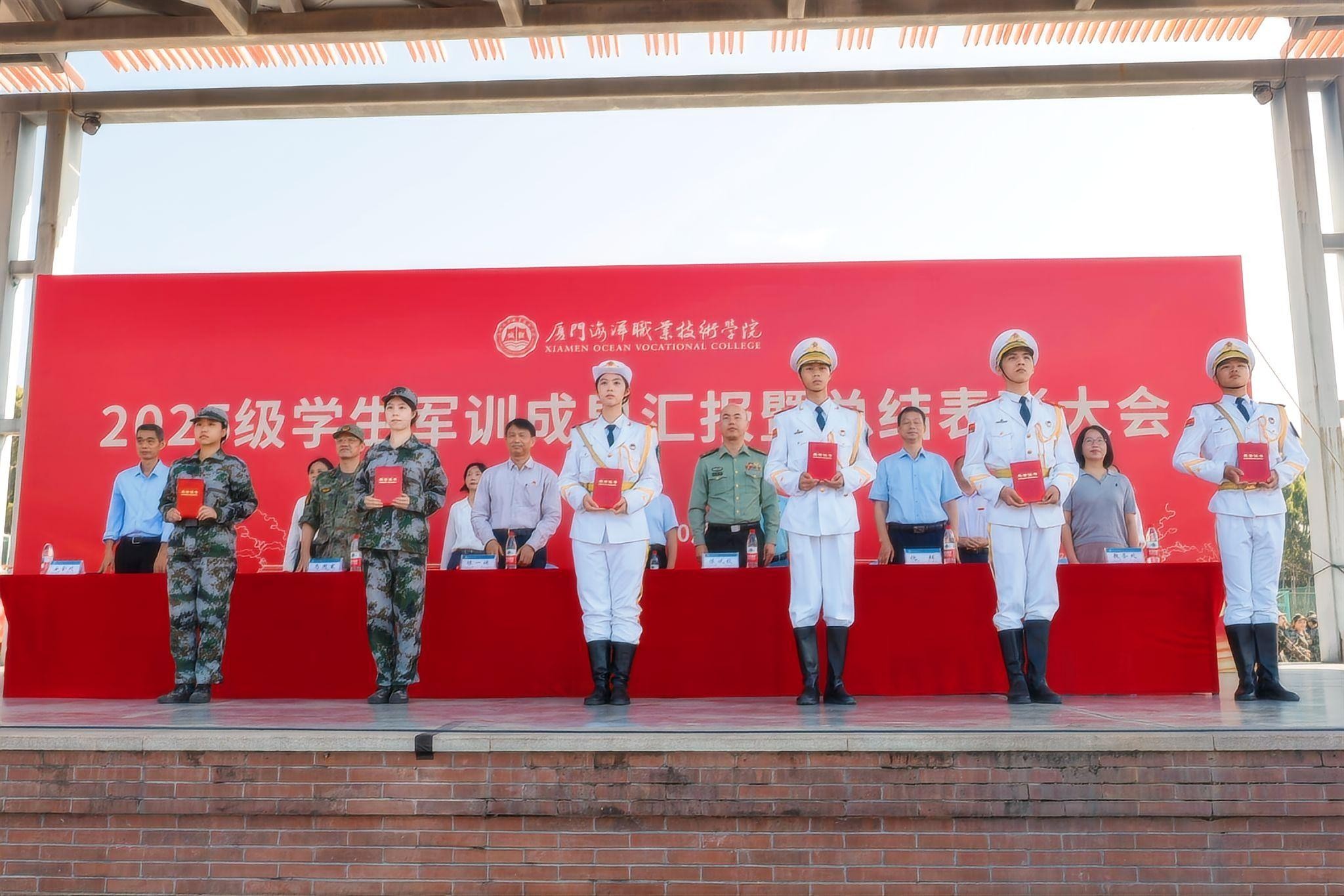 10月26日上午,我校2025级学生军训成果汇报暨总结表彰大会分别在翔安、思明两校区同步举行。厦门警备区战备建设处副处长陈斌钦,思明区人武部上校部长李斌应邀参加。我校党委书记陈一端、院长刘光明、副院长马国玄、副院长倪辉出席。