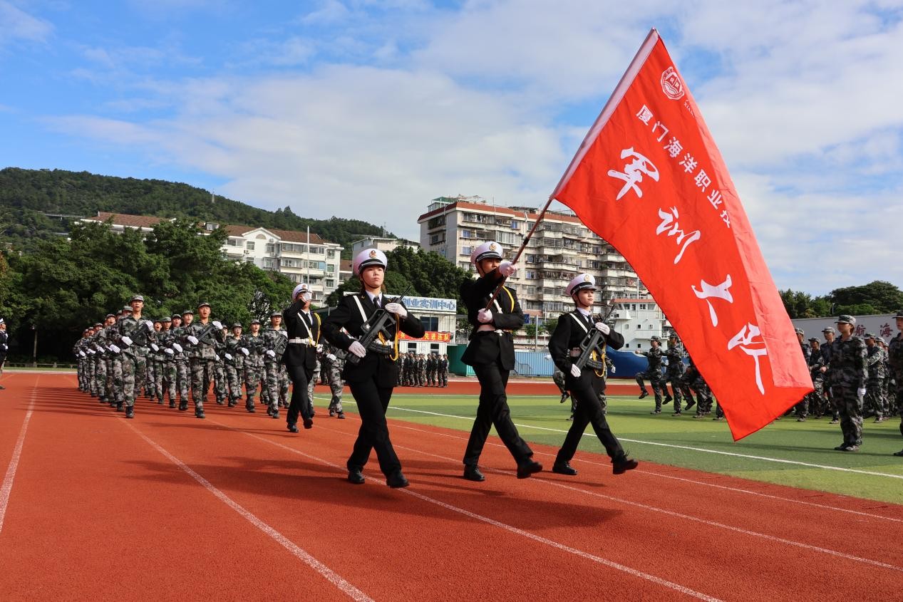 刘光明希望同学们把军训激发出来的爱国热情、养成的纪律观念和锤炼的拼搏精神,转化为勤学苦练、兴海报国的实际行动。珍惜青春年华,坚定理想信念,弘扬嘉庚精神,坚定“亲海爱海学海”的理想信念,练就兴海报国的过硬本领,在学校创建高水平职业教育类型海洋大学的征程中绽放青春风采。