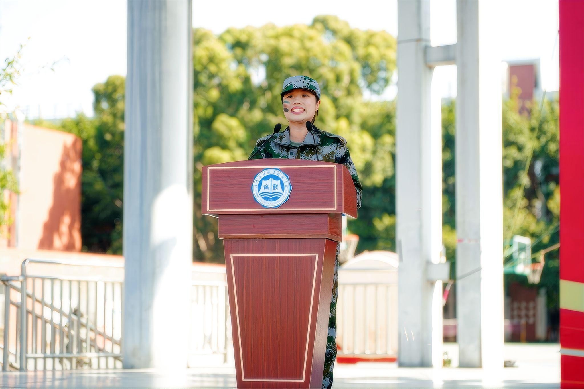 参训学生代表跨境电商3252娄欣宜、航海3252张勇智作为优秀学员代表发言。他们分享了自己军训期间的体会和收获,并表示接下来从军训回归课堂,将继续保持专注执着,把军训作风转化为学习动力、融入日常,以奋斗姿态迎接挑战,不负时代赋予青年的使命,兴海报国。