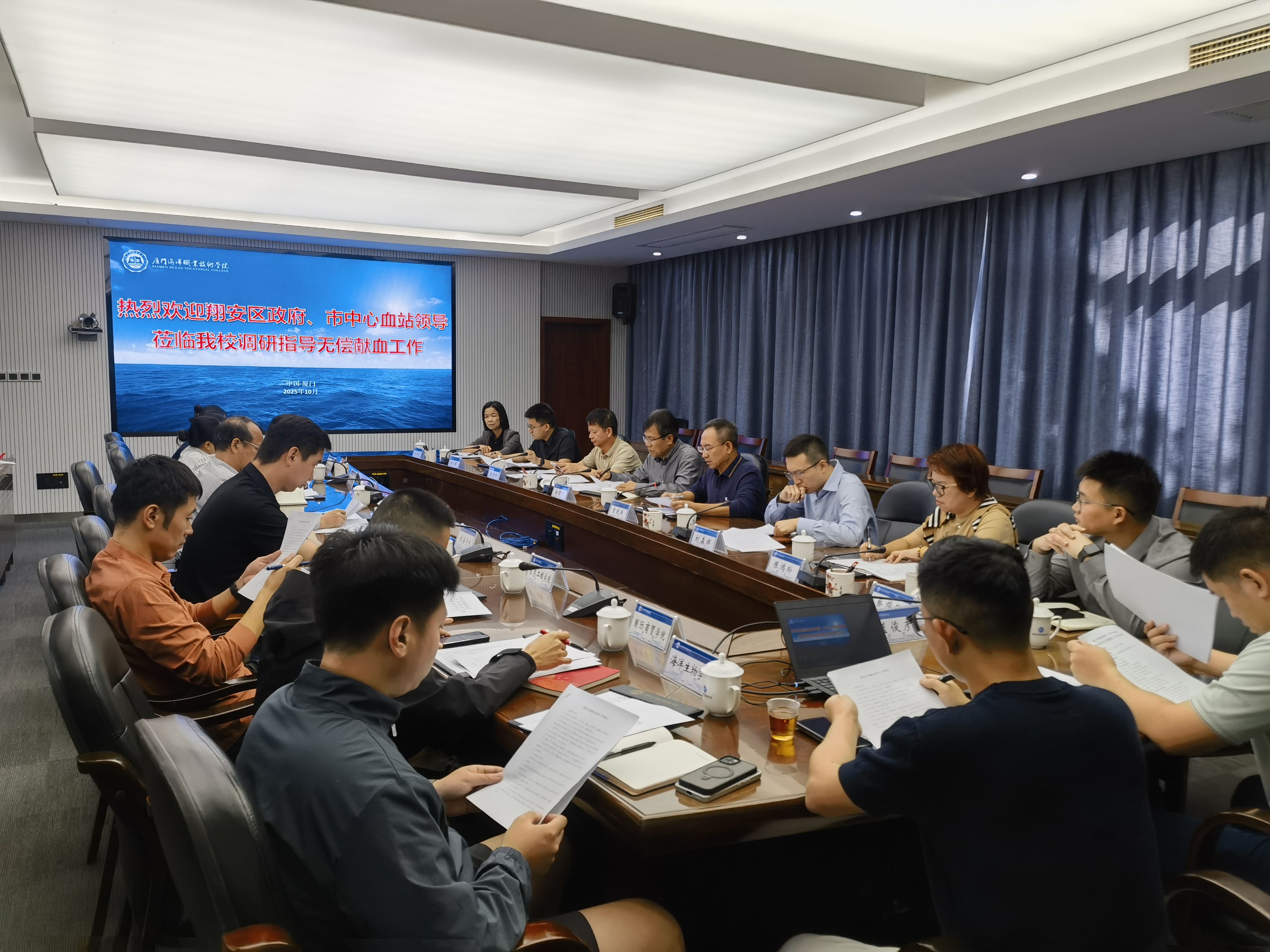 10月29日,翔安区人民政府副区长徐得志率厦门市中心血站、翔安区卫健局、翔安区团委一行9人莅临我校,就校园无偿献血工作开展专项座谈。副院长马国玄出席会议。