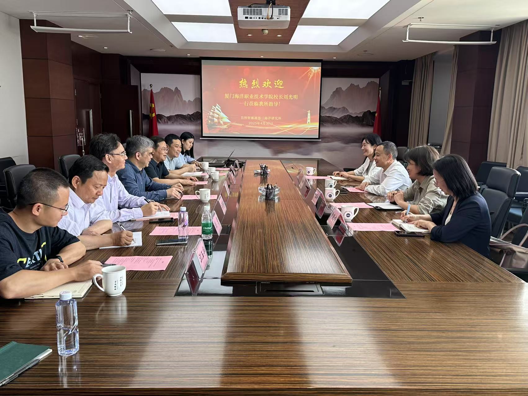 4月30日,厦门海洋职业技术学院院长刘光明带队到自然资源部第三海洋研究所调研,海洋三所副所长陈建宁、林龙山热情接待了刘光明一行。
