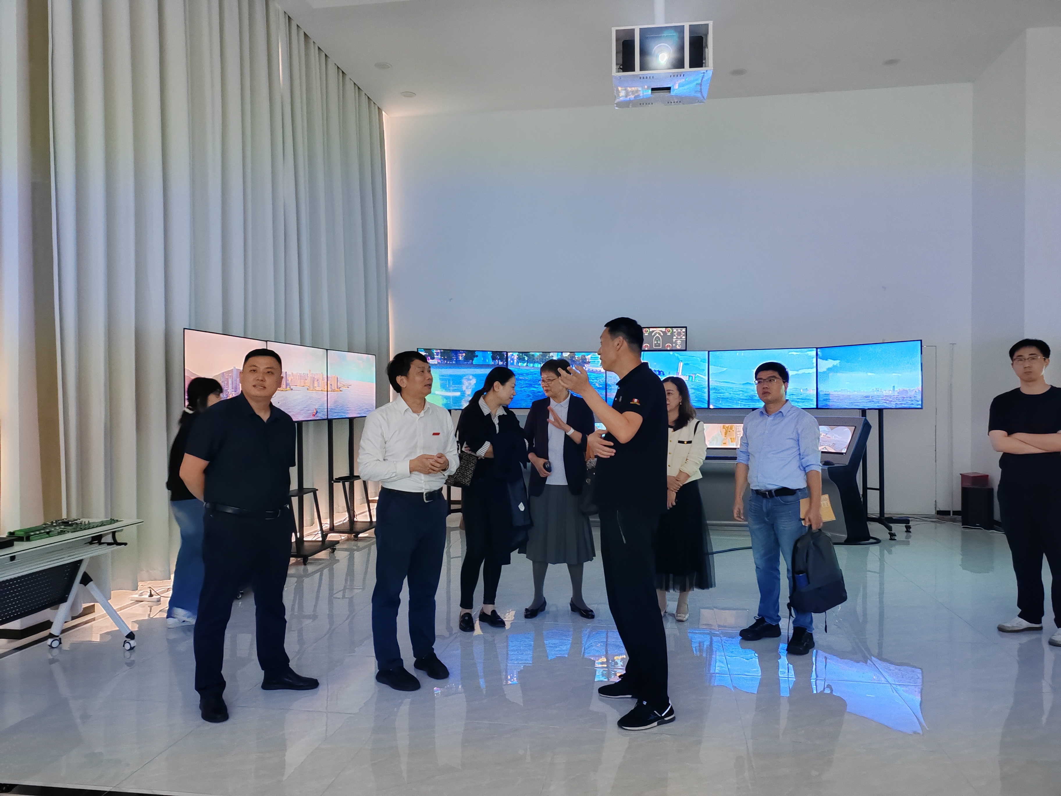 在企业展厅参观环节,技术团队详细介绍了超大型双燃料船舶全任务一体化模拟训练系统的最新研究进展;现场展示了航海模拟教学平台以及基于VR技术的航海仿真训练平台。这些拥有自主知识产权的技术成果,展现出企业在航海仿真领域的核心优势。据蔡茂元总经理介绍,作为国家级高新技术企业,厦门和丰互动科技深耕航海仿真技术研发十余年,形成涵盖智能船舶、海洋信息化、航海技术评估的完整产品体系。
