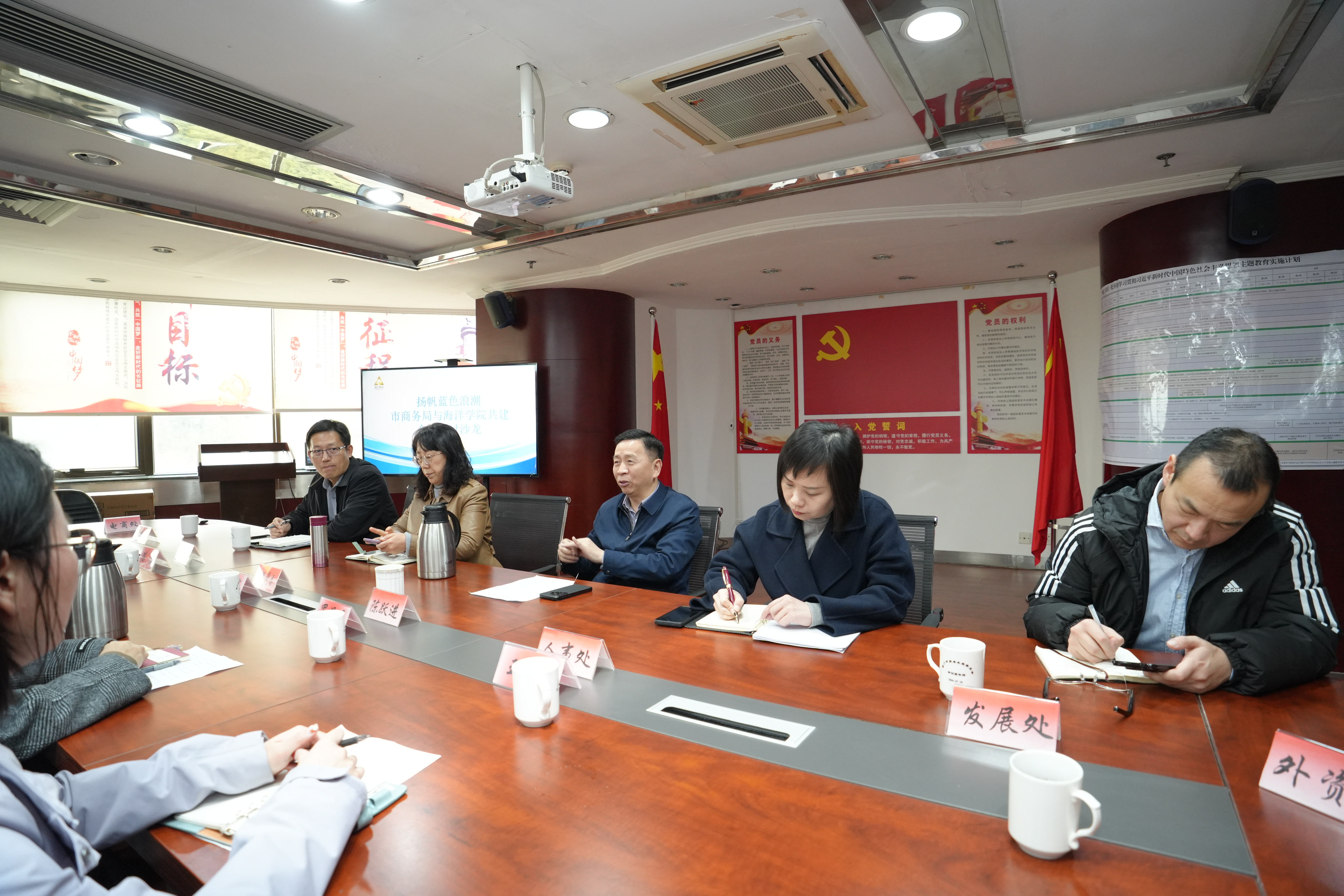 陈跃进对罗娟娟一行的到访表示热烈欢迎,介绍了厦门市商务局今年的重点工作和双方共建合作的设想。陈跃进指出,厦门市商务局与我校已签署了共建合作战略协议,双方应携手共进,构建深度协作框架,加快推进项目合作。当前商务局各项工作正有序高效推进,商务局诚挚欢迎我校教师前往挂岗交流学习,以期实现双方干部能力的有效提升与共同进步。罗娟娟感谢厦门市商务局的热情接待,介绍了国际商贸学院的基本情况。希望通过调研走访加强双方合作交流,推动合作落地;及时了解厦门市商务局“十五五”规划要点、行业发展趋势以及企业对人才的需求等情况,推进产教融合、政校企合作,提高人才培养质量。双方还就传统外贸的转型升级、跨境电商清关支付政策、物流供应链的优化创新等热点问题及其未来发展趋势,充分交换了意见与看法,探讨了相应的思路和举措。
