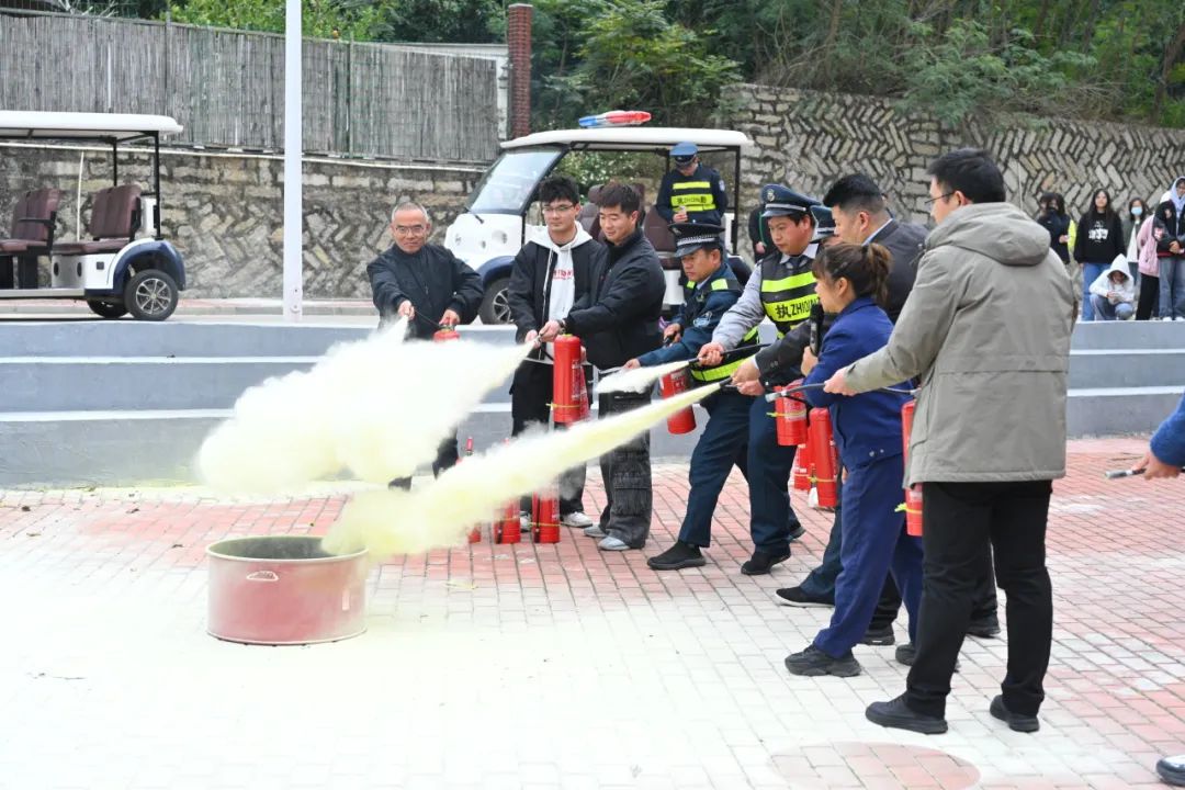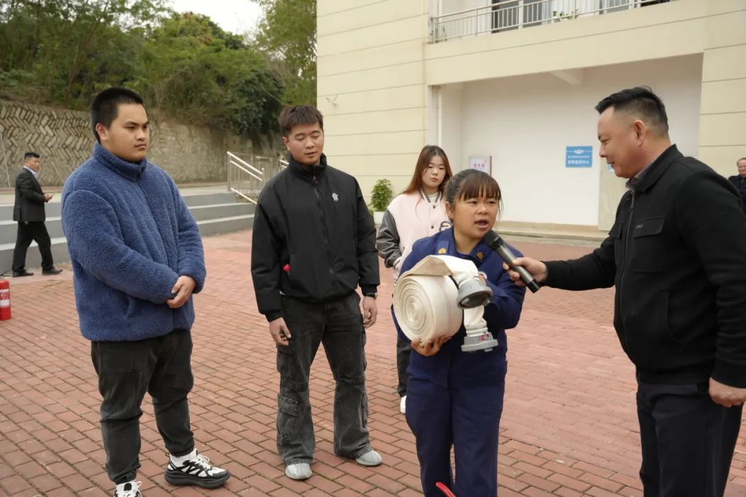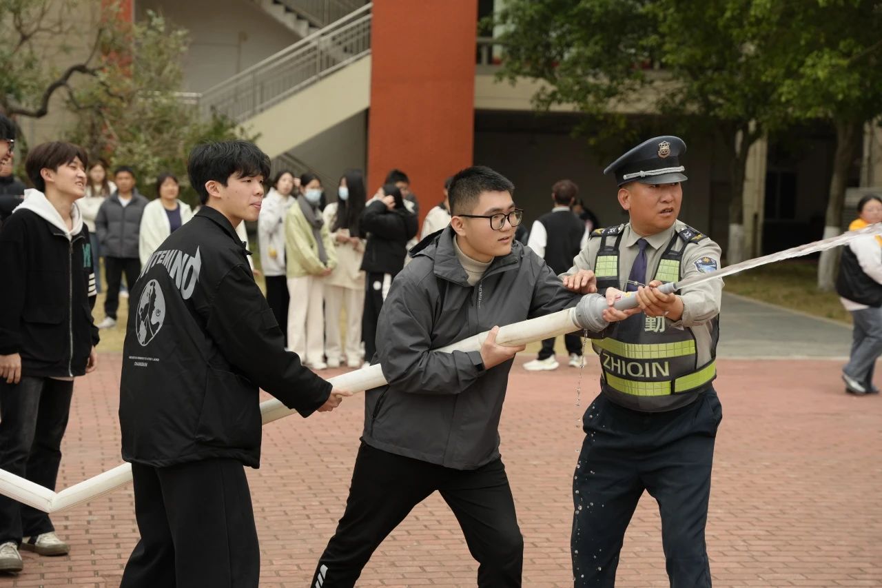 本次演练活动包括应急疏散演练和灭火实操等技能培训两个部分。活动结束后,童玉馨教官结合具体案例,向师生讲解了日常生活中的防火知识、火灾报警及逃生方法,并演示了常见消防设施设备的使用技巧,指导师生进行实际操作。