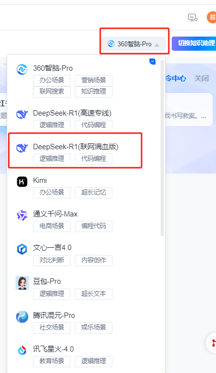 无需额外下载,直接使用。集成包括DeepSeek、豆包、通义千问在内的多个主流大模型,点击右上角模型可自主切换,如图2所示。