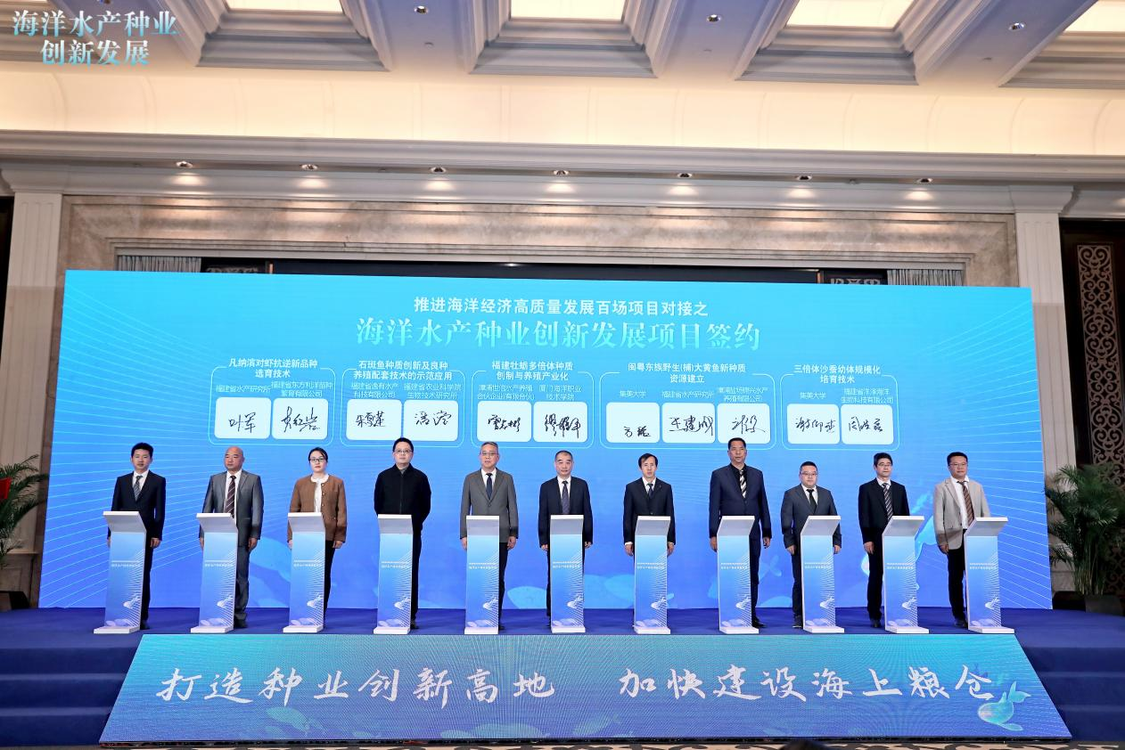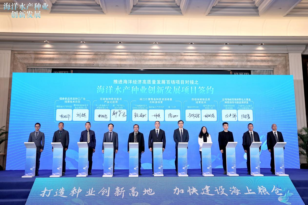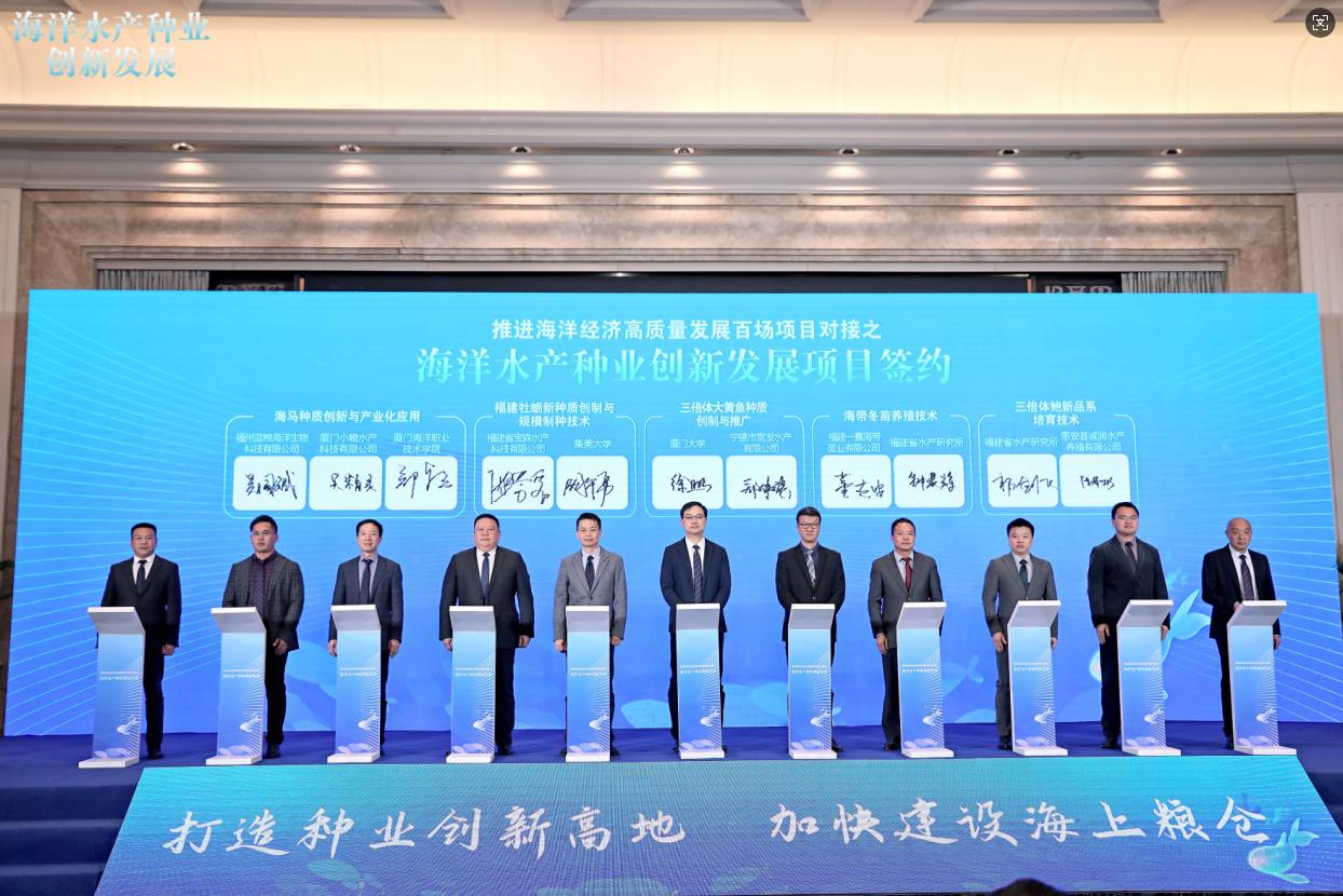 近年来,我校高度重视应用型科研项目的开展,积极与企业、科研院所合作,特别是在牡蛎、石斑鱼和海马等水产苗种繁育与推广养殖方面,已为企业和渔民带来了经济效益,对保障“蓝色粮仓”具有积极意义。同时,科研团队又通过送技下乡、高素质农民培育等活动,带动了乡村振兴。在本次对接活动中,三项水产种业的重要成果与企业成功签约,标志着我校在海洋水产种业领域的科研项目取得了显著成效,能够推动科研成果落地转化。