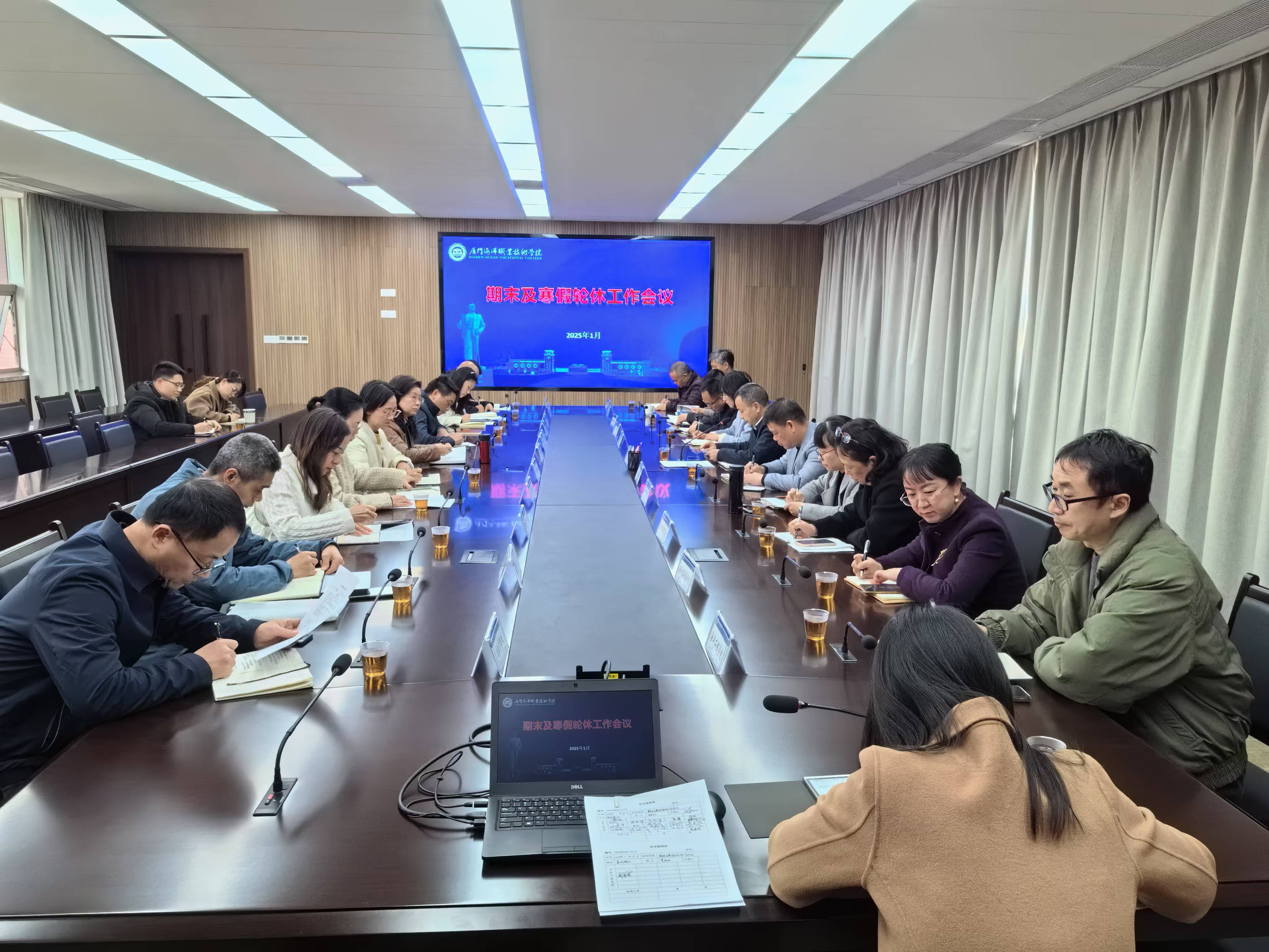 1月16日,党委副书记、院长刘光明主持召开期末及寒假轮休工作会议,会议传达了2025年全国教育工作会议精神。各部门、二级学院围绕专业建设、师资队伍建设、学生管理、实习就业、科研工作、社会服务、竞赛备赛、基建和校园安全等方面汇报寒假和下学期初重点工作。