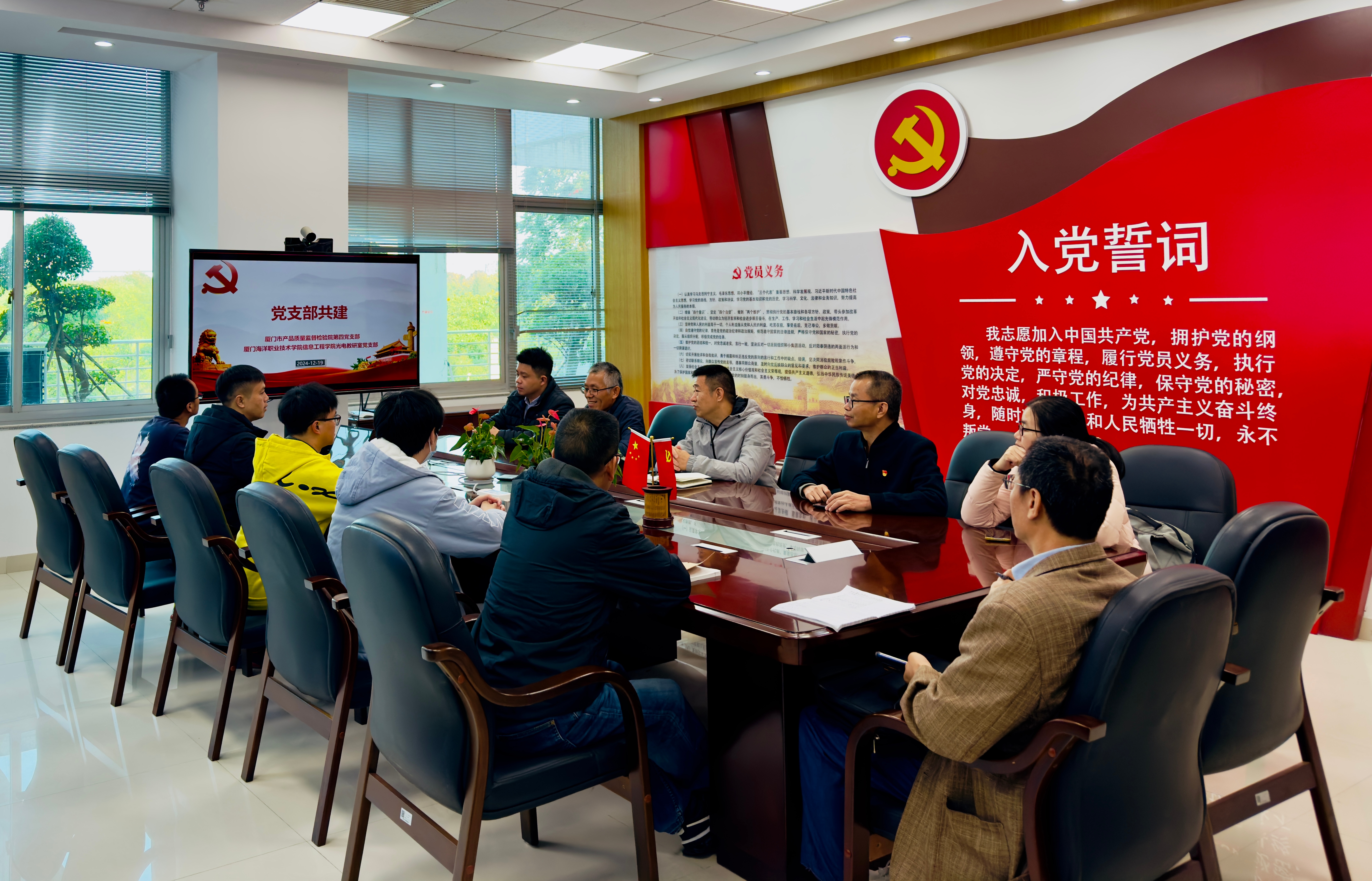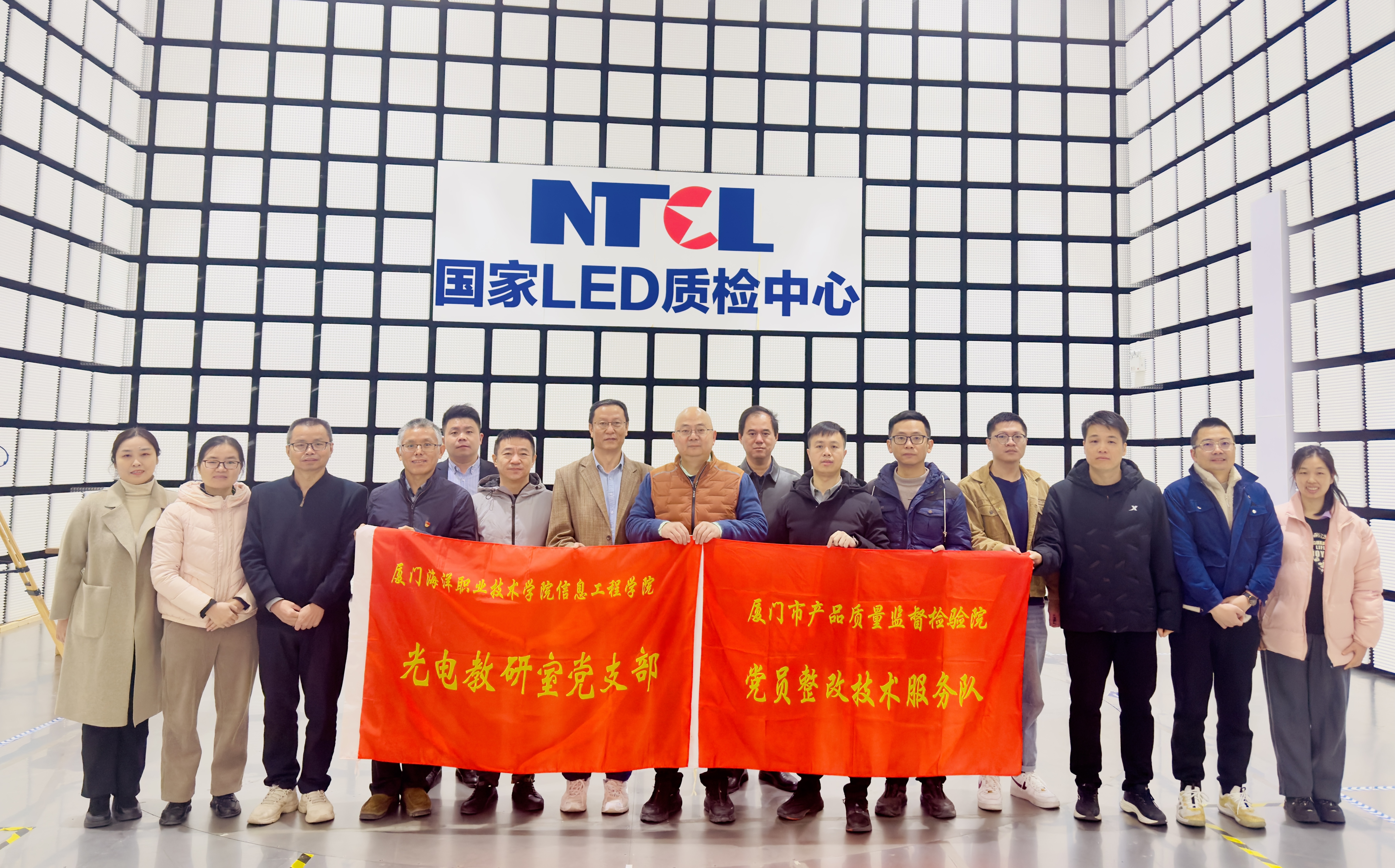 在厦门质检院,双方进行座谈,就光电产品测试技术发展及现状、学生实习基地建设、党支部未来共建合作等事项进行了光电教研室党支部与质检院第四党支部确立了合作共建关系,双方深入交流探讨。双方将携手共建,依托基层党支部共建平台孵化更多创新合作项目。