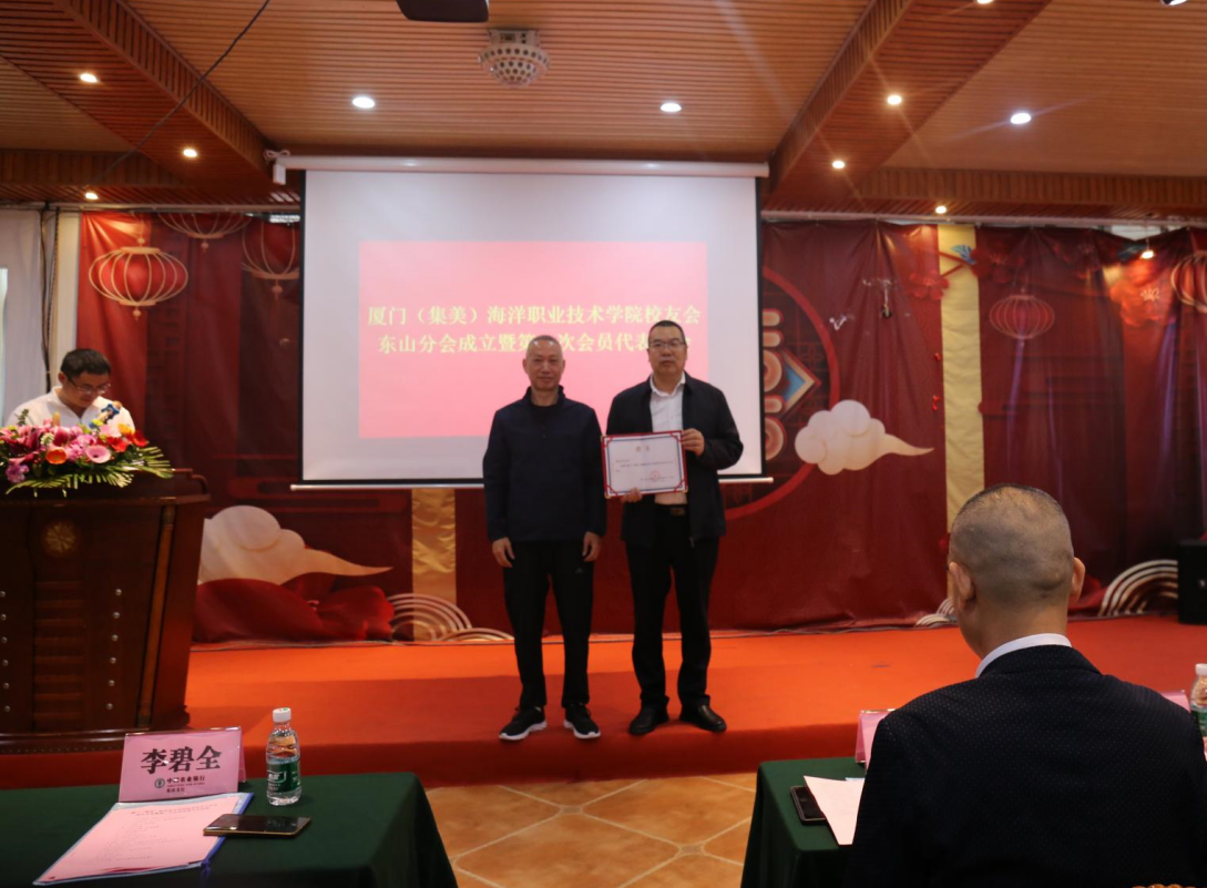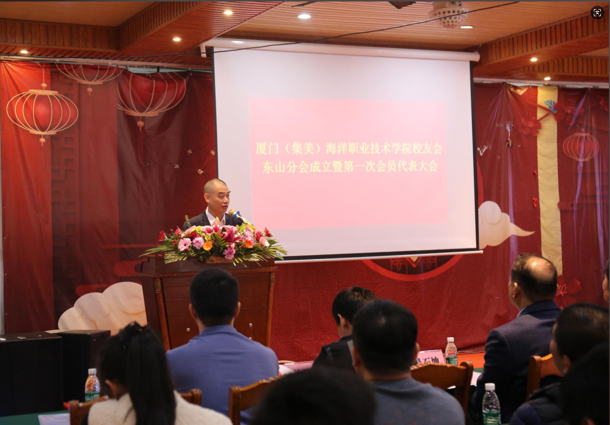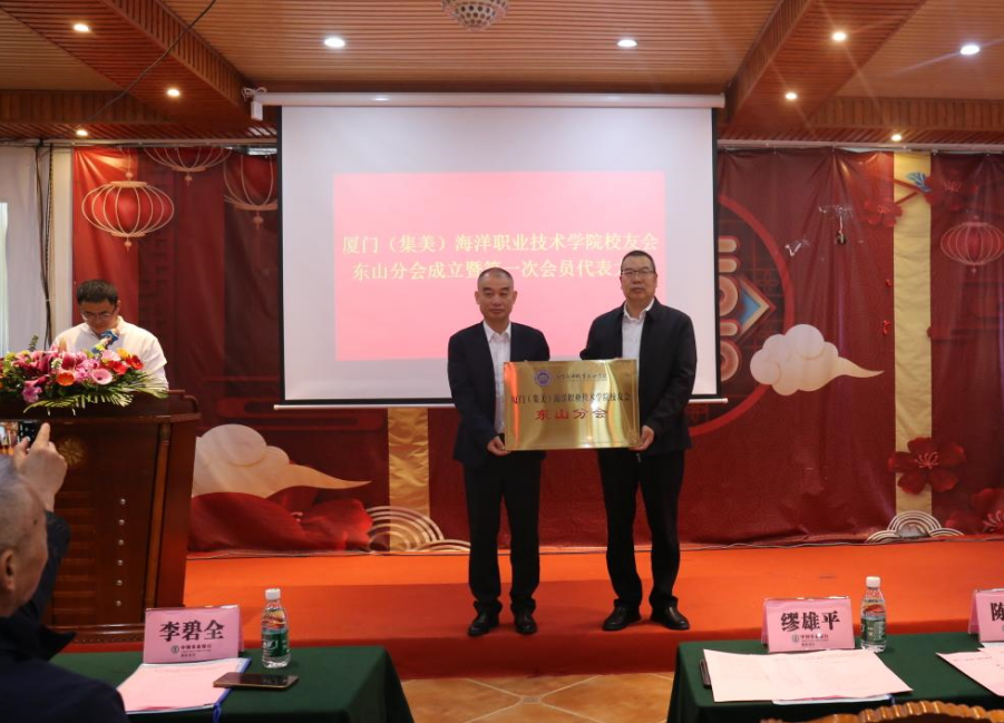 12月7日,厦门(集美)海洋职业技术学院校友会东山分会成立大会暨第一次会员代表大会在东山县召开。来自东山的校友代表们欢聚一堂,共忆求学青春、畅叙校友情谊、共话未来发展。学校党委副书记缪雄平出席成立大会并致辞,校友会、党政办相关负责人参加活动。