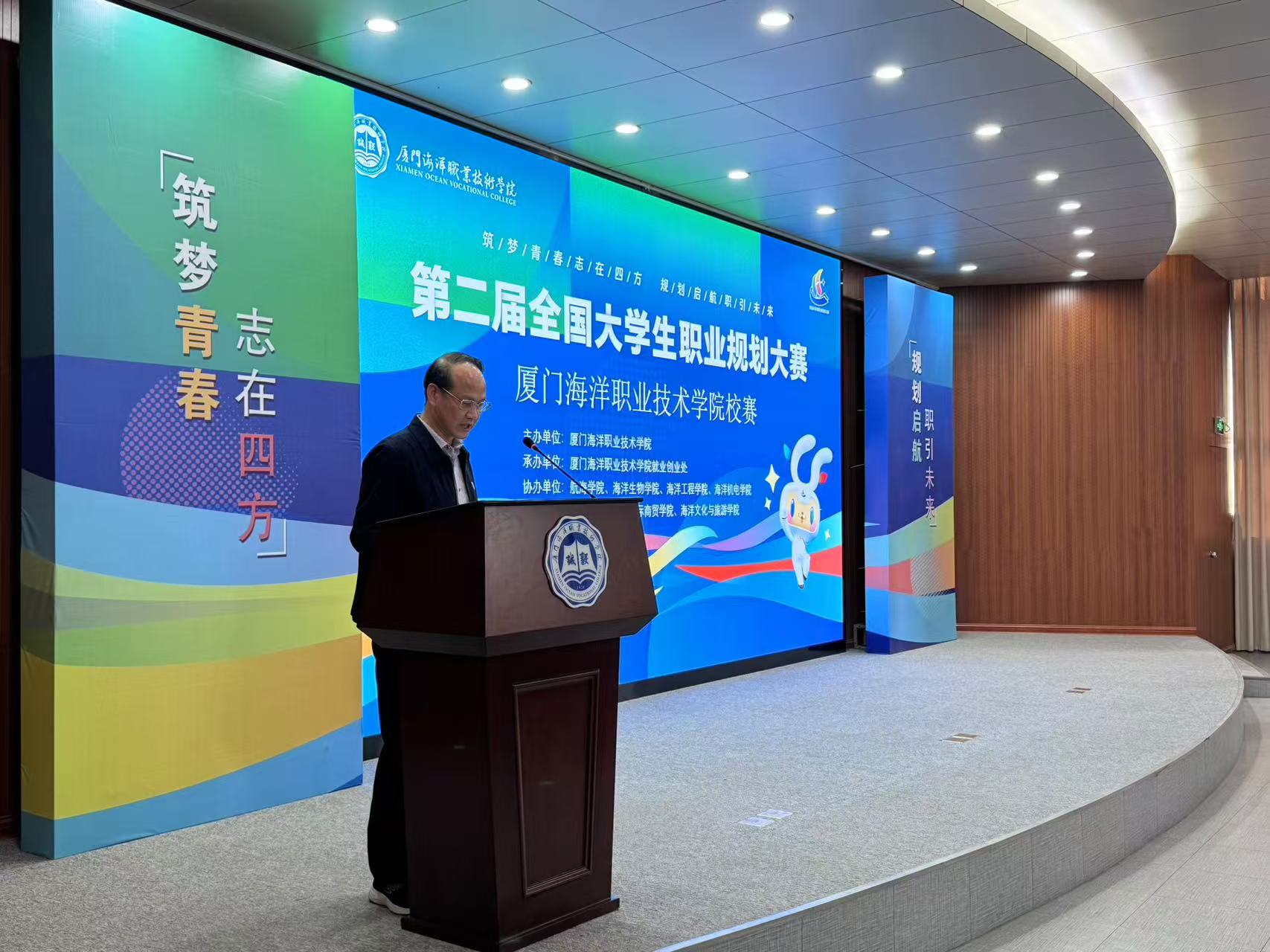 12月12日,以“筑梦青春志在四方规划启航职引未来”为主题的第二届全国大学生职业规划大赛厦门海洋职业技术学院校赛决赛在T2报告厅举行,党委委员、副院长马国玄出席活动并致辞。
