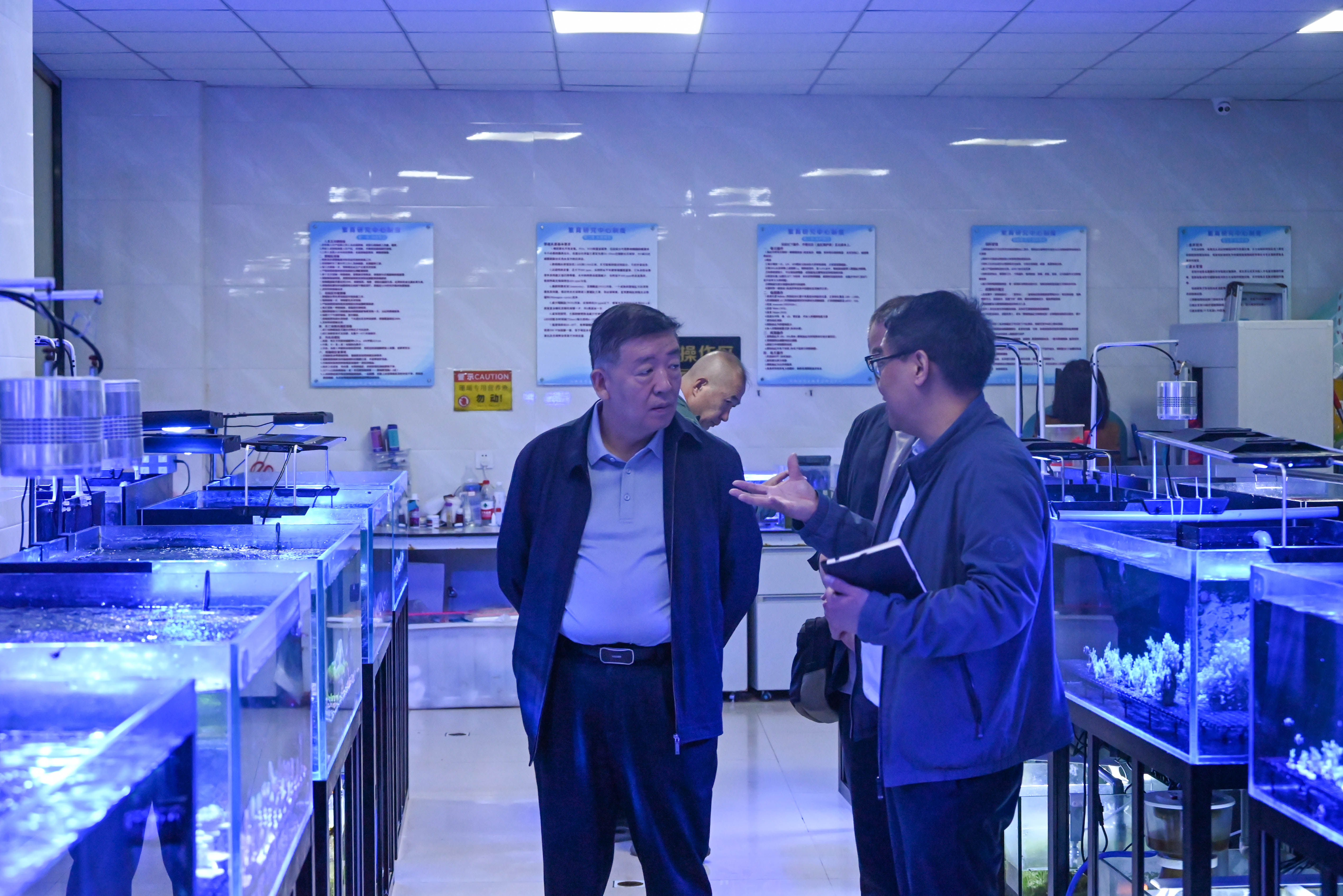 王英斌一行先后参观了学校校主纪念馆、校史展览馆,实地考察了福建省智慧渔业应用技术协同创新中心、珍稀海洋生物繁育研究中心和福建省海洋生物应用技术协同创新中心。海洋机电学院、海洋生物学院等相关人员参加交流。