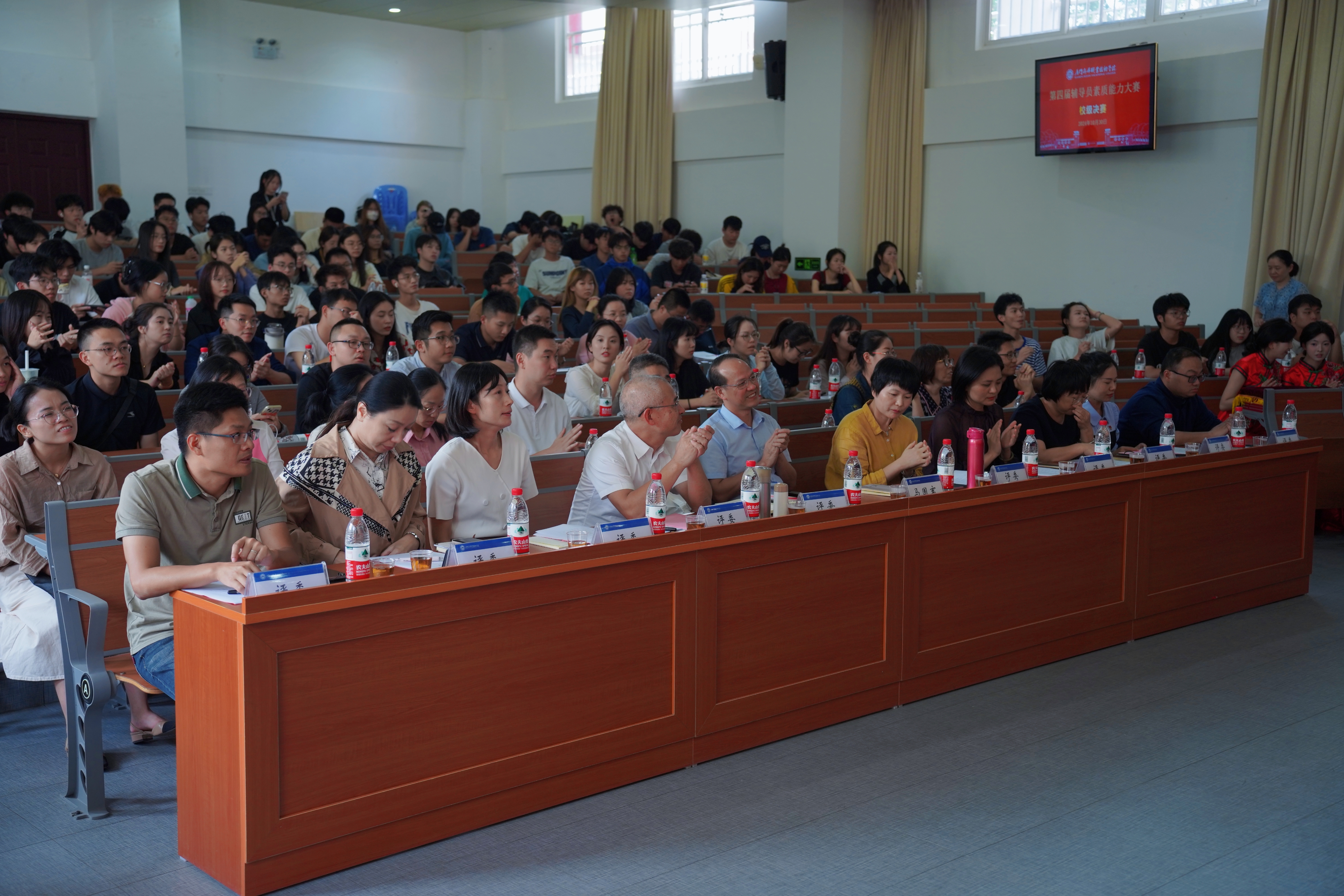 为学习贯彻党的二十届三中全会精神,不断提升我校辅导员队伍的专业化、职业化水平,10月30日,我校在翔安校区T2报告厅举办第四届辅导员素质能力大赛决赛。党委委员、副院长马国玄出席活动,安全处处长林杰钦、组织部副部长邱春华、人事处副处长林娇芬、马克思主义学院副院长李东、各二级学院党总支书记现场观摩并担任大赛评委。团委、学工部、全体辅导员和学生代表近200人观看了比赛。