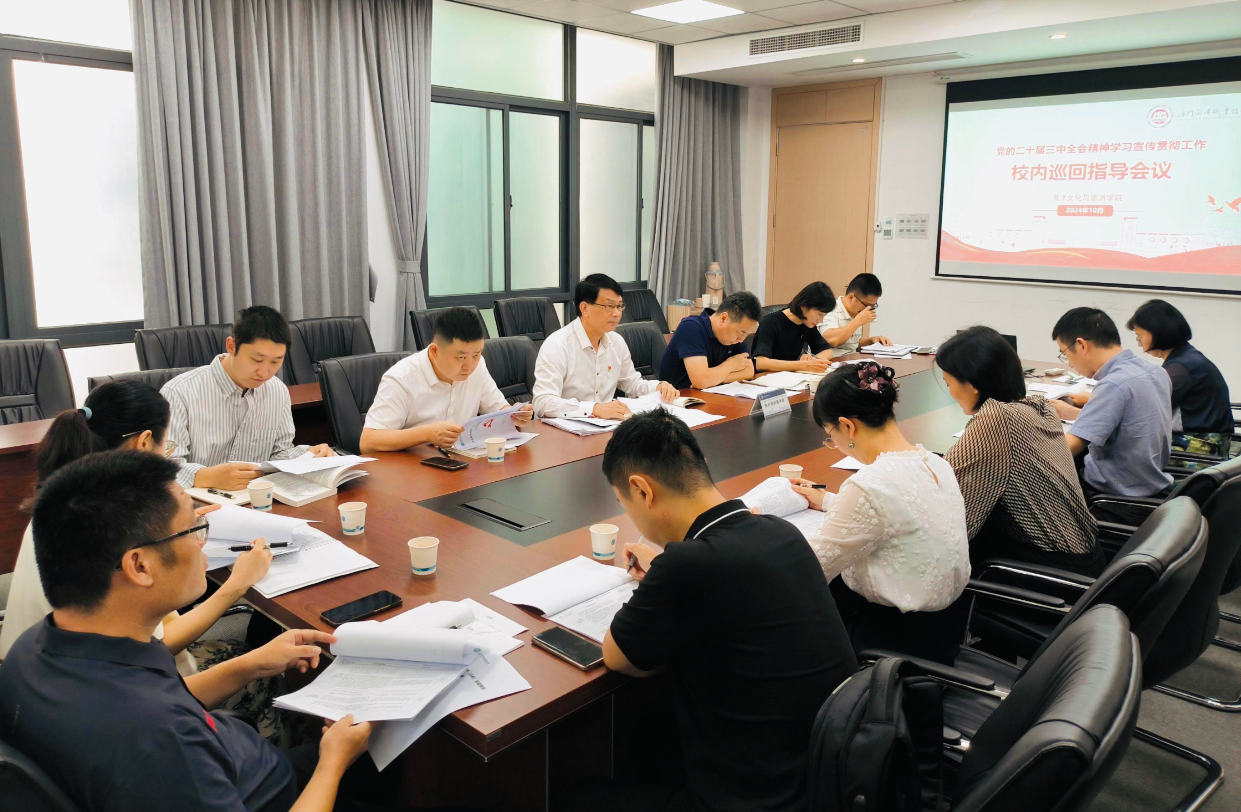 10月9日,校党委书记陈一端率党的二十届三中全会精神学习宣传贯彻工作校内巡回指导到海洋文化与旅游学院指导工作。