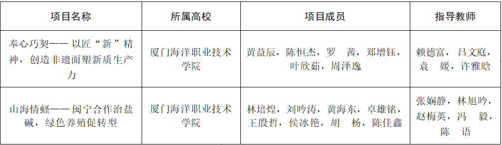 近日,第十三届“挑战杯”福建省大学生创业计划竞赛暨第十三届福建省大学生“创业之星”大赛圆满落幕。自大赛启动以来,82所高校共推报“挑战杯”“创业之星”作品2649件,包含材料评审、实地考察、决赛路演等环节。我校在本次赛事中获得金奖2项、银奖1项、铜奖1项,取得了近年来的最好成绩。其中,《奉新巧契——以“匠”新精神,创造非遗面塑新质生产力》《山海情蛏——闽宁合作治盐碱,绿色养殖促转型》两个项目摘得桂冠。