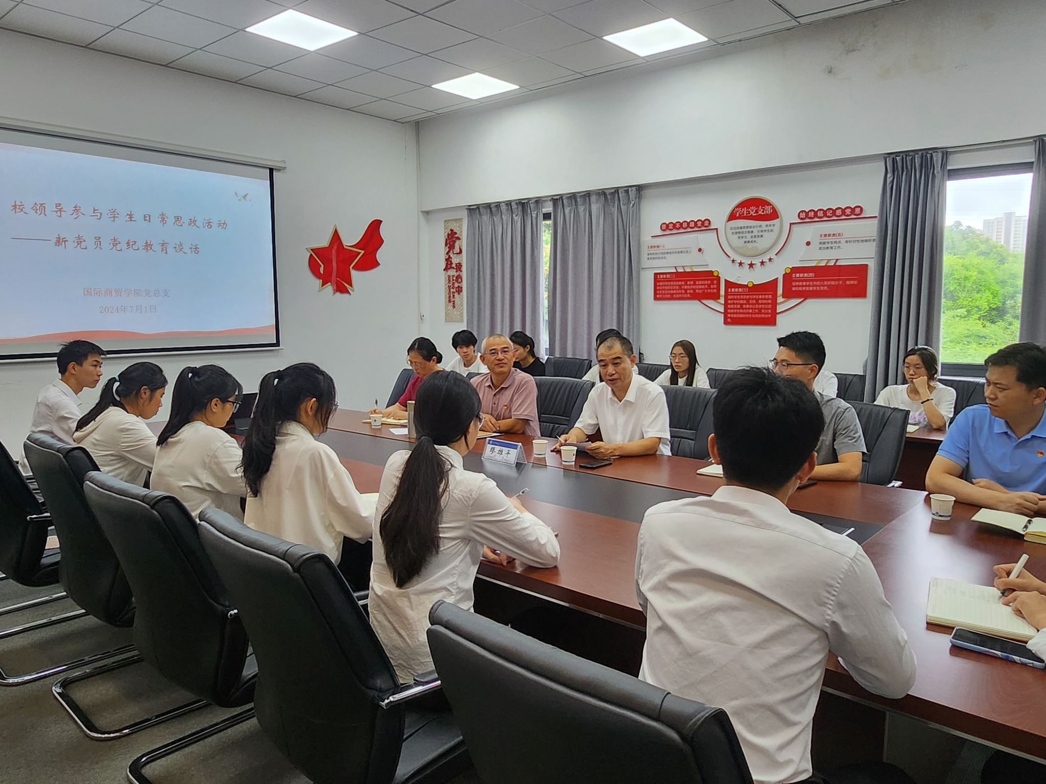 为教育引导新发展党员坚定理想信念,锤炼党性修养,7月1日下午,国际商贸学院党总支邀请校党委副书记、校工会主席缪雄平同新发展党员座谈,强调要严守党纪,做合格党员。