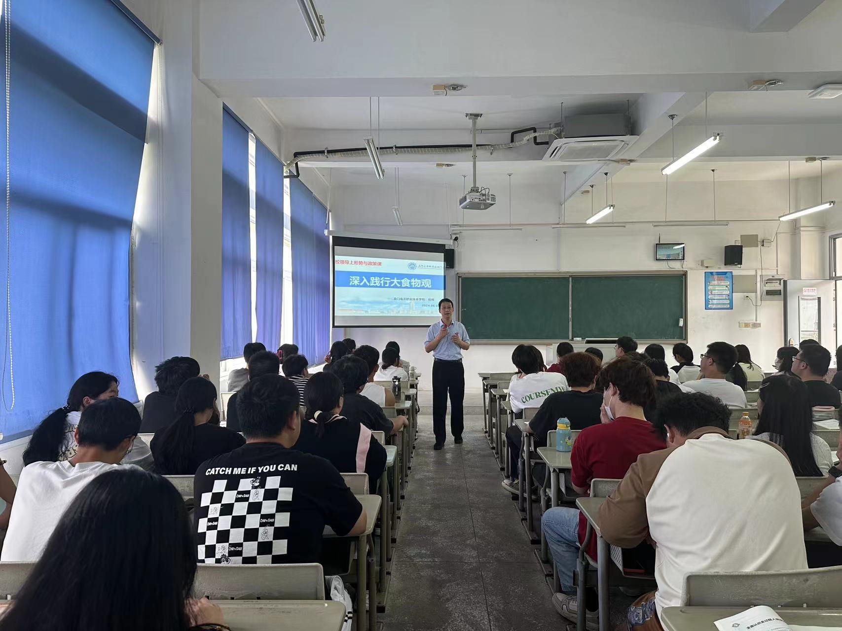 6月7日,党委委员、副院长倪辉教授走进思政课堂,为海洋生物学院加工3231班、养殖3233班的同学们讲授“深入践行大食物观”专题思政课。
