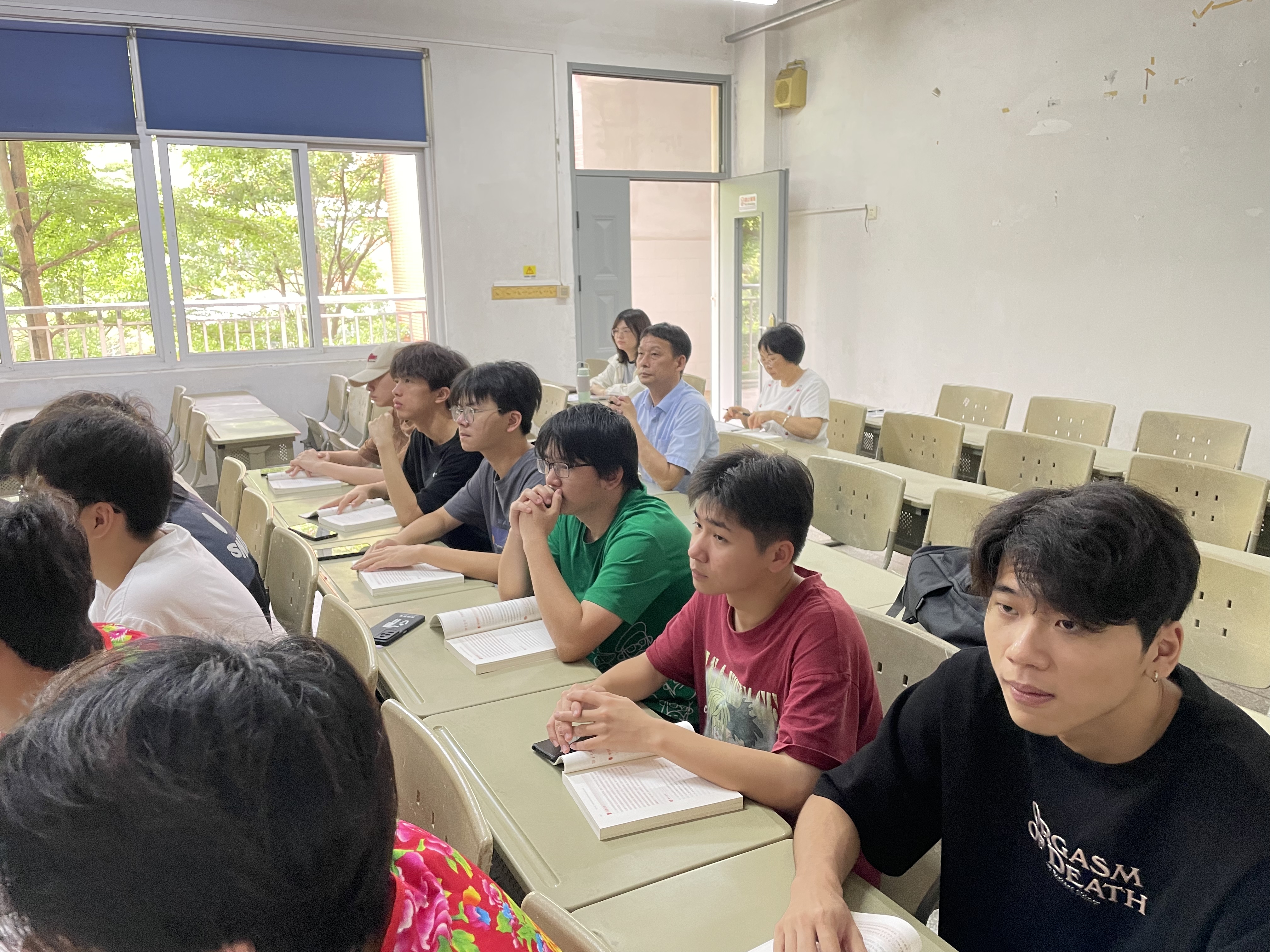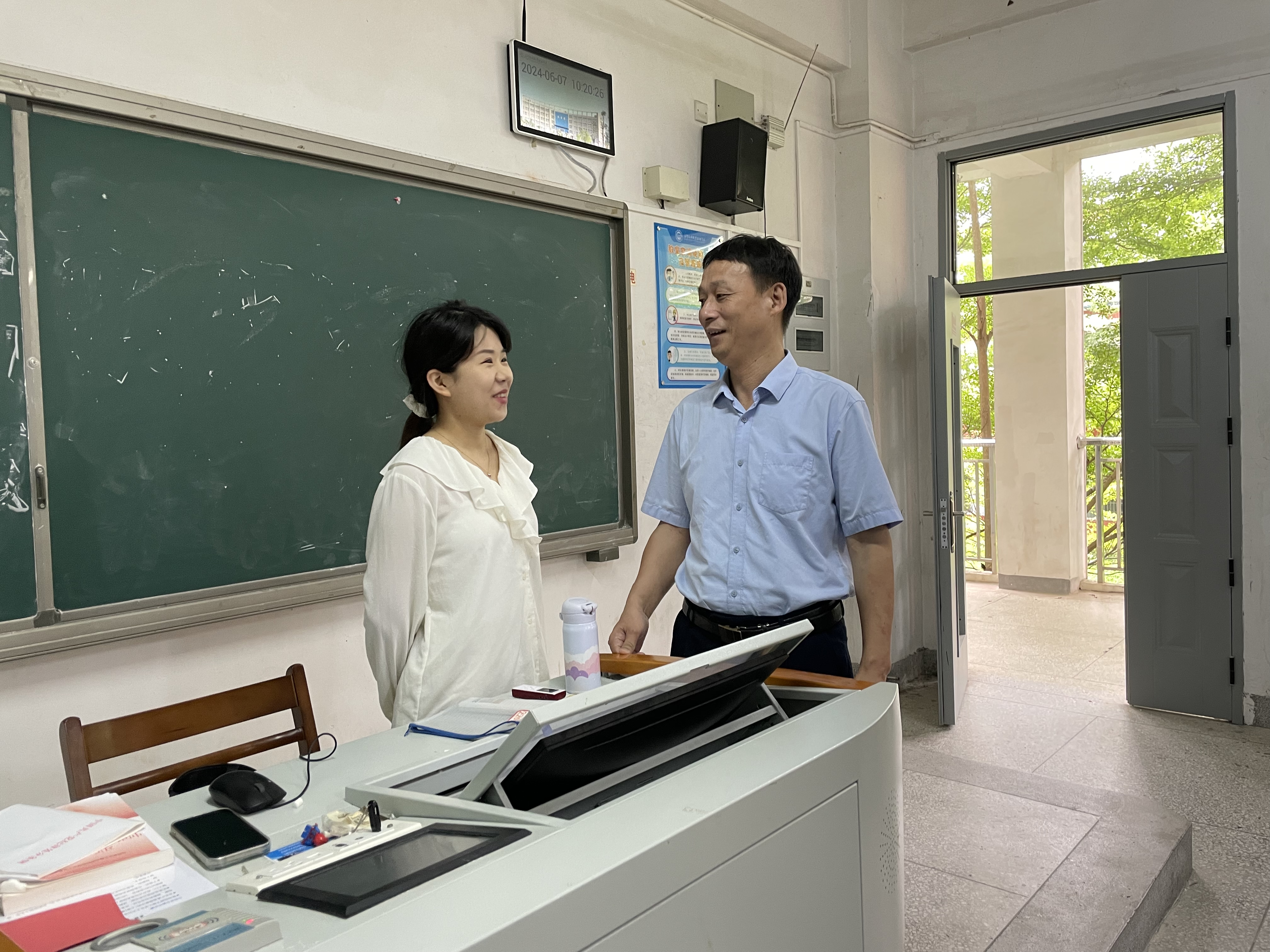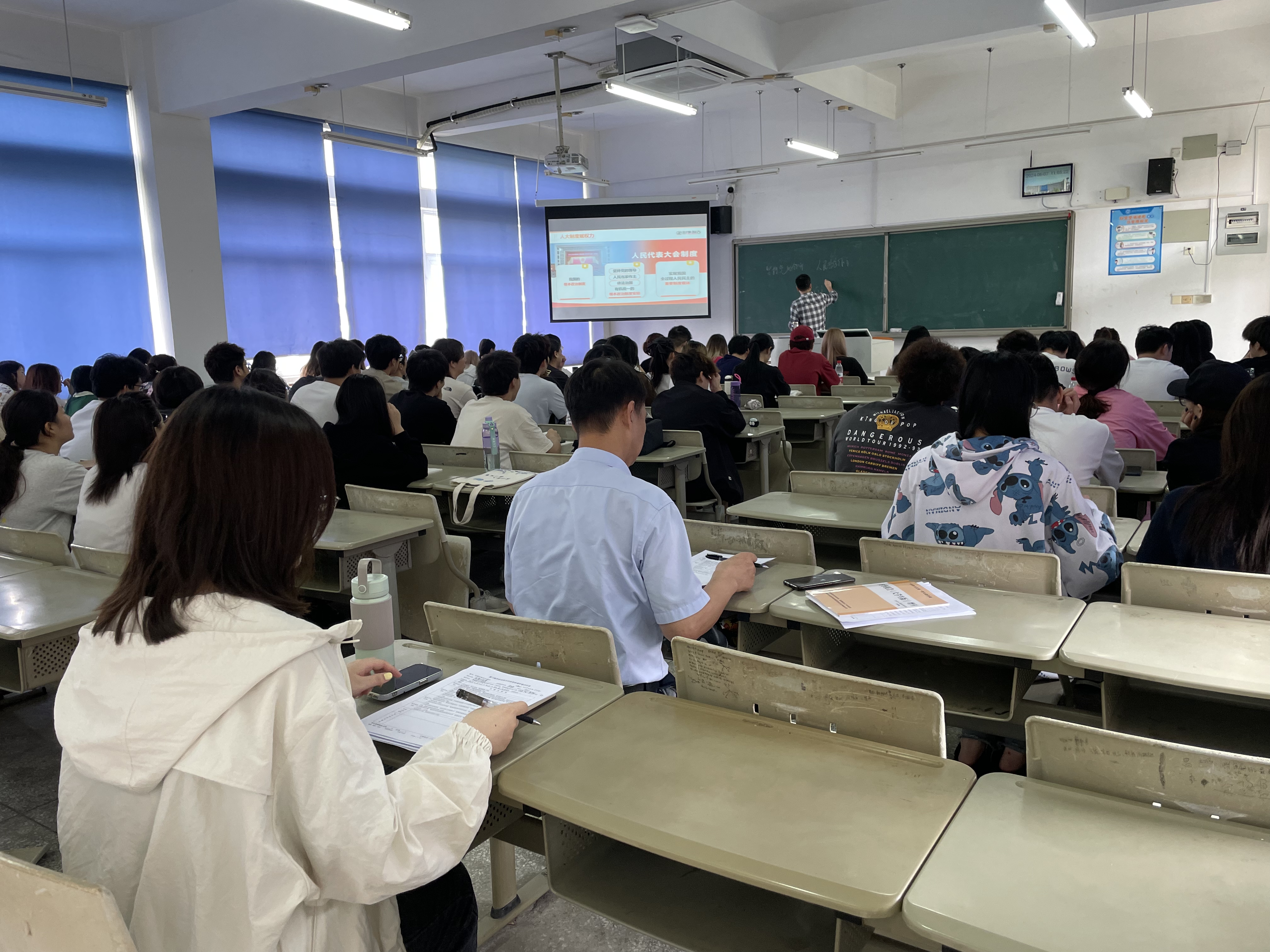 6月7日,党委委员、副院长倪辉教授走进思政课堂,与机器人3231班、3232班的同学共听《习近平新时代中国特色社会主义思想概论》课程、与国商3231班、港口物流5201班的同学共听《形势与政策》课程。