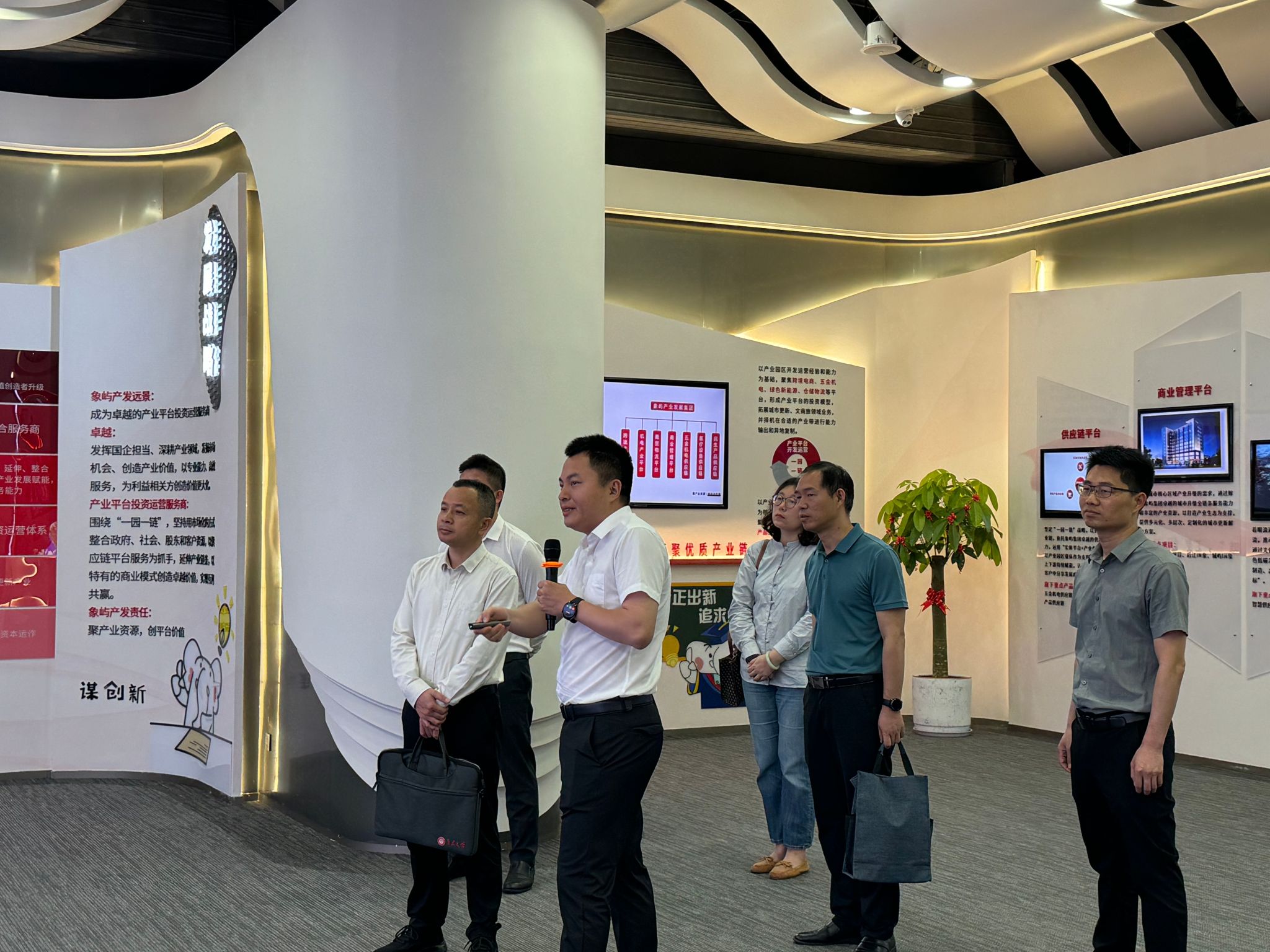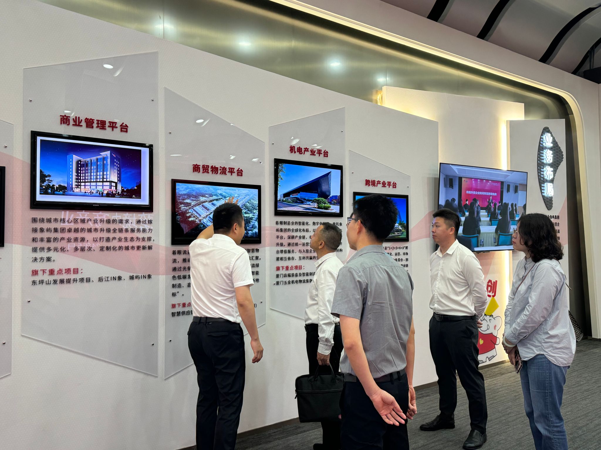 厦门象屿自贸区开发有限公司总经理陈呈武带领刘光明一行参观象屿跨境电商产业园一楼数字展厅,生动形象地介绍了象屿集团的发展历史、业务布局、平台建设、项目定位等情况。通过讲解,现场师生深刻体会到象屿集团在国家经济发展与培养人才中的重要贡献,加深对象屿品牌的认知与了解。