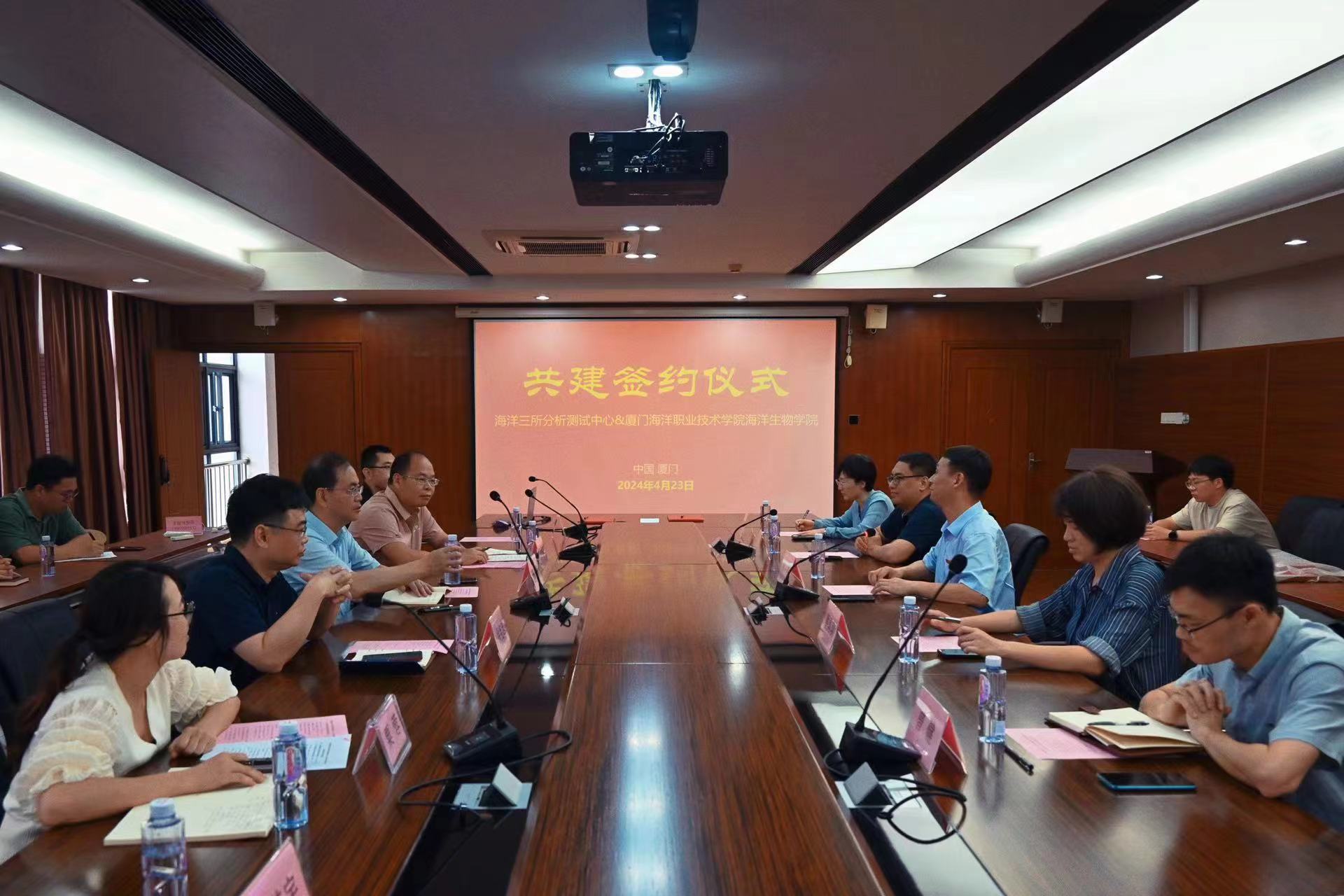 4月23日,自然资源部第三海洋研究所(以下简称海洋三所)分析测试中心—厦门海洋职业技术学院海洋生物学院共建协议签约仪式在海洋三所APEC会议室隆重举行。党委委员、副院长倪辉带领海洋生物学院相关人员参加签约仪式。此次共建,是继我校与海洋三所合作共营福建省海洋生物应用技术协同创新中心后,聚焦“科—产—教”深度融合的探索与实践,为我校持续推进现代职业教育创新模式改革与特色“蓝色工匠”高质量人才培养构筑起新的平台与机遇。