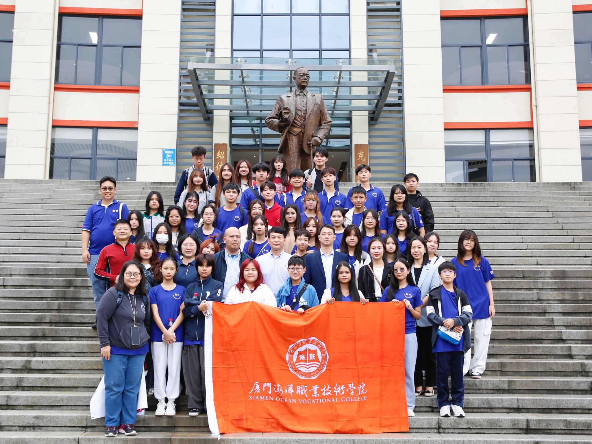 在校史馆,学员们认真聆听讲解,了解了百年海院的办校历史,感悟陈嘉庚先生的家国情怀。在珍稀海洋生物繁育研究中心,学员们被五光十色的珊瑚、海水鱼深深吸引,在水族箱前驻足拍照。在工作人员的介绍下,学员们学习了海洋生物繁育、保护的专业知识,感受海洋文化的魅力。有学员表示,希望今后有机会能来厦门海洋职业技术学院学习相关专业,共同投身于海洋保护事业中。