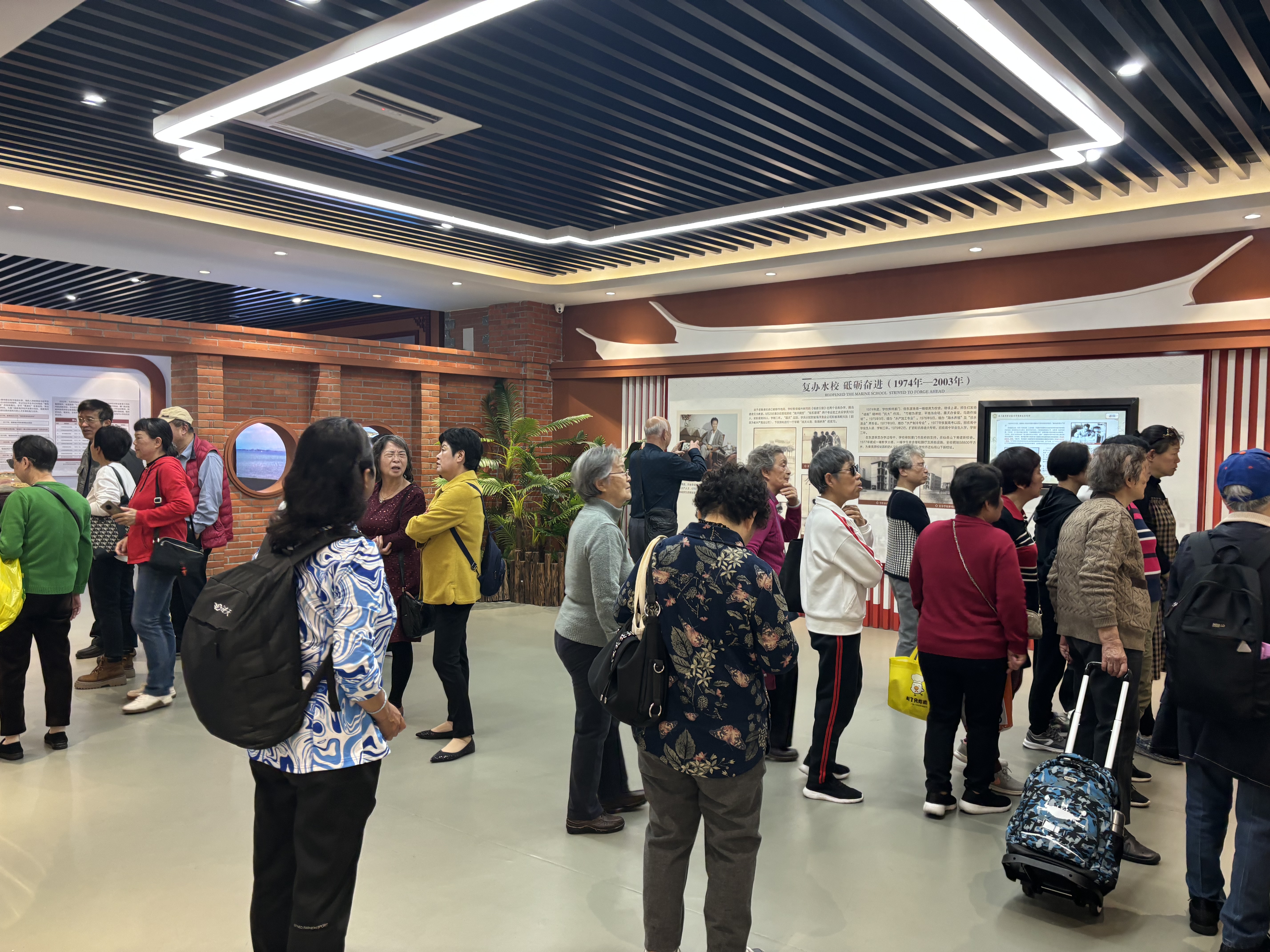 在校史馆和世界船模文化展览馆,大家重温建校历史,感受海洋文化。当学生讲解员讲到“我校以船模馆为核心内容申报的《以“船”述史:中国古船模工艺制作人才培训》获得国家艺术基金(一般项目)立项支持”,大家尤为激动,纷纷表示通过返校赏樱活动,真切地感受到了学校的蓬勃发展,也祝愿学校的未来越来越好。