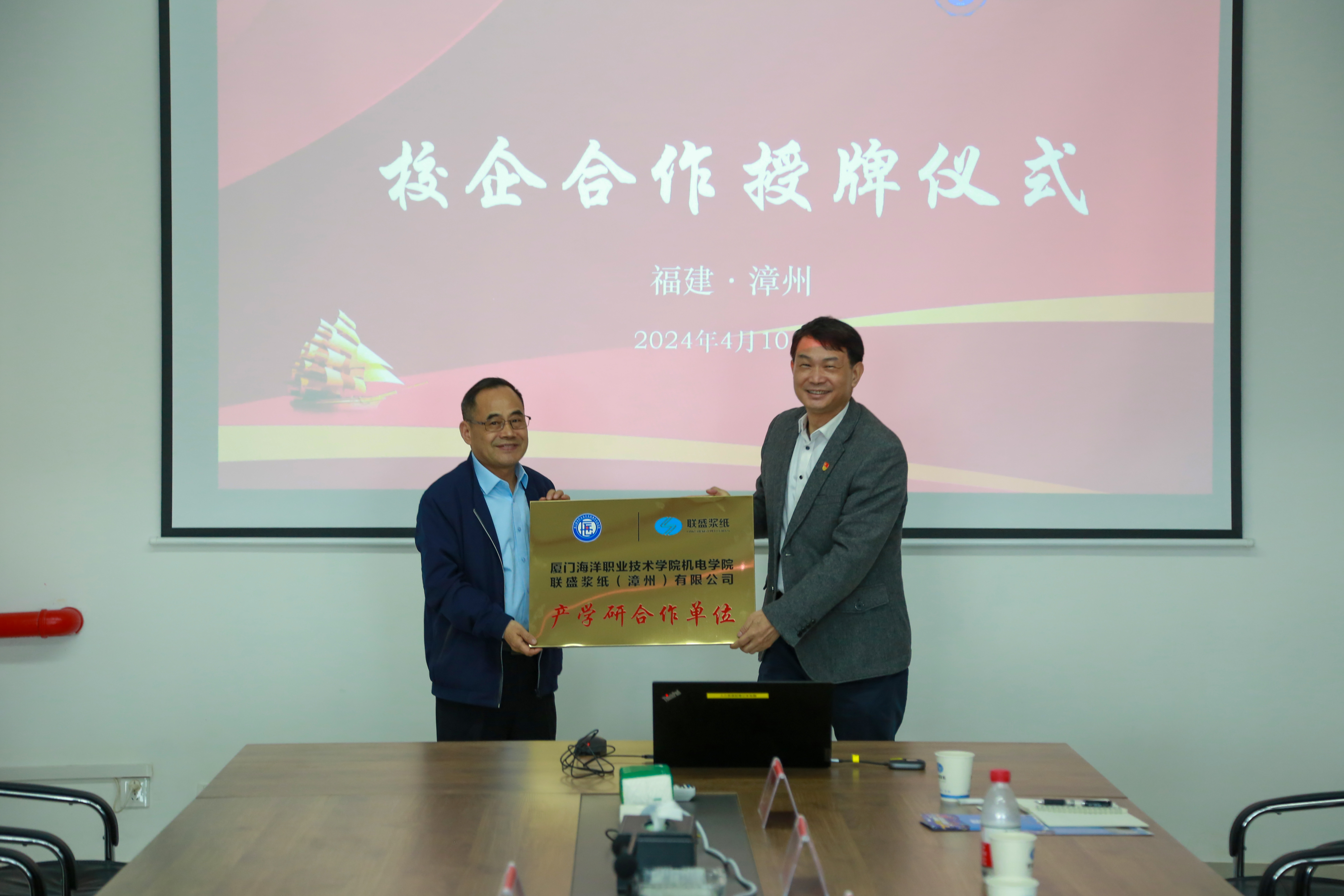 联盛浆纸(漳州)有限公司副总经理赵恺介绍了企业发展概况和人才引进情况,以及我校校友在公司就业情况,希望能与我校在人才培养、实习就业、科研合作等方面加深合作,实现产学研合作的互利共赢。郭霄总监介绍了企业人才的发展通道,欢迎更多肯吃苦、肯动脑筋的优秀毕业生到企业扎根,做到“能来、能留、能发展”。