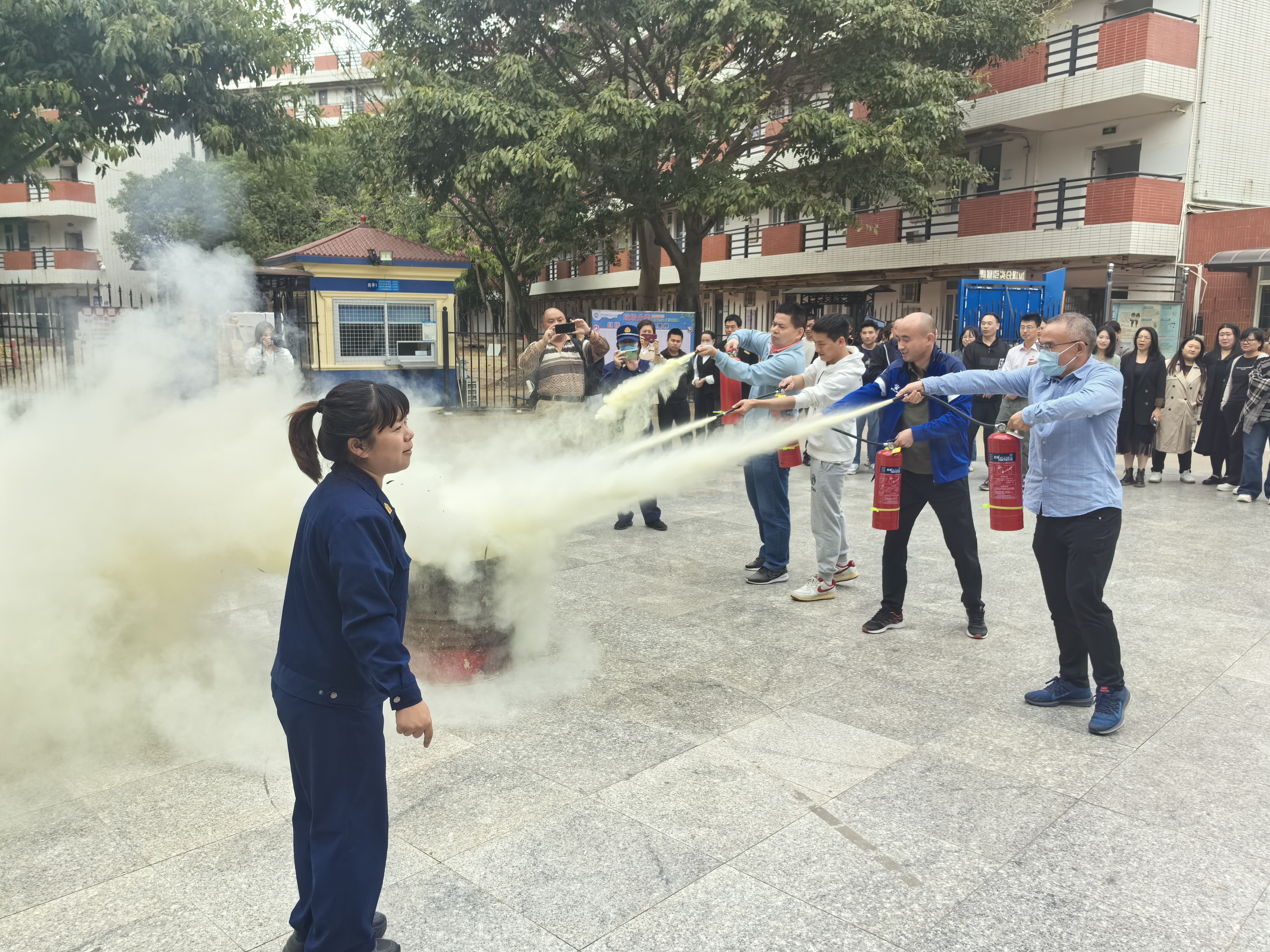 培训会上翔安区消防救援大队童玉馨教官深入浅出、既有专业高度又有典型案例,详细讲解了日常生活中如何防火、发生火灾如何报警、逃生以及灭火器材如何使用等消防知识。会后新店街道专职消防队队员现场向师生示范、教授干粉灭火器的使用方法,组织学校微型消防站人员展示消防水枪的使用等,参训人员轮流使用干粉灭火器进行灭火实操演练,进一步提高了师生消防安全意识和扑灭初期火灾技能等自防自救能力。