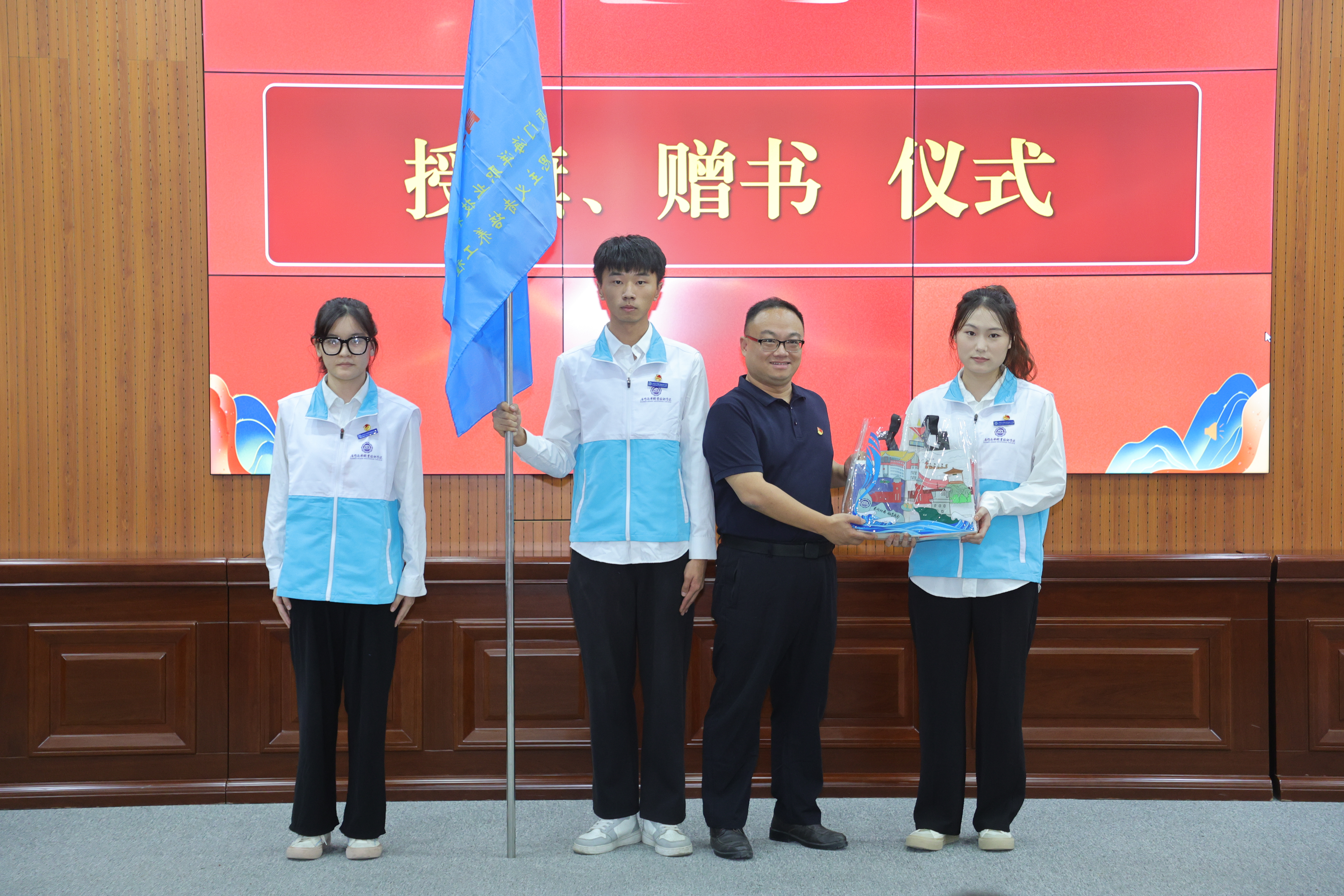 图四 陈锟副书记为青马班学员授旗赠书