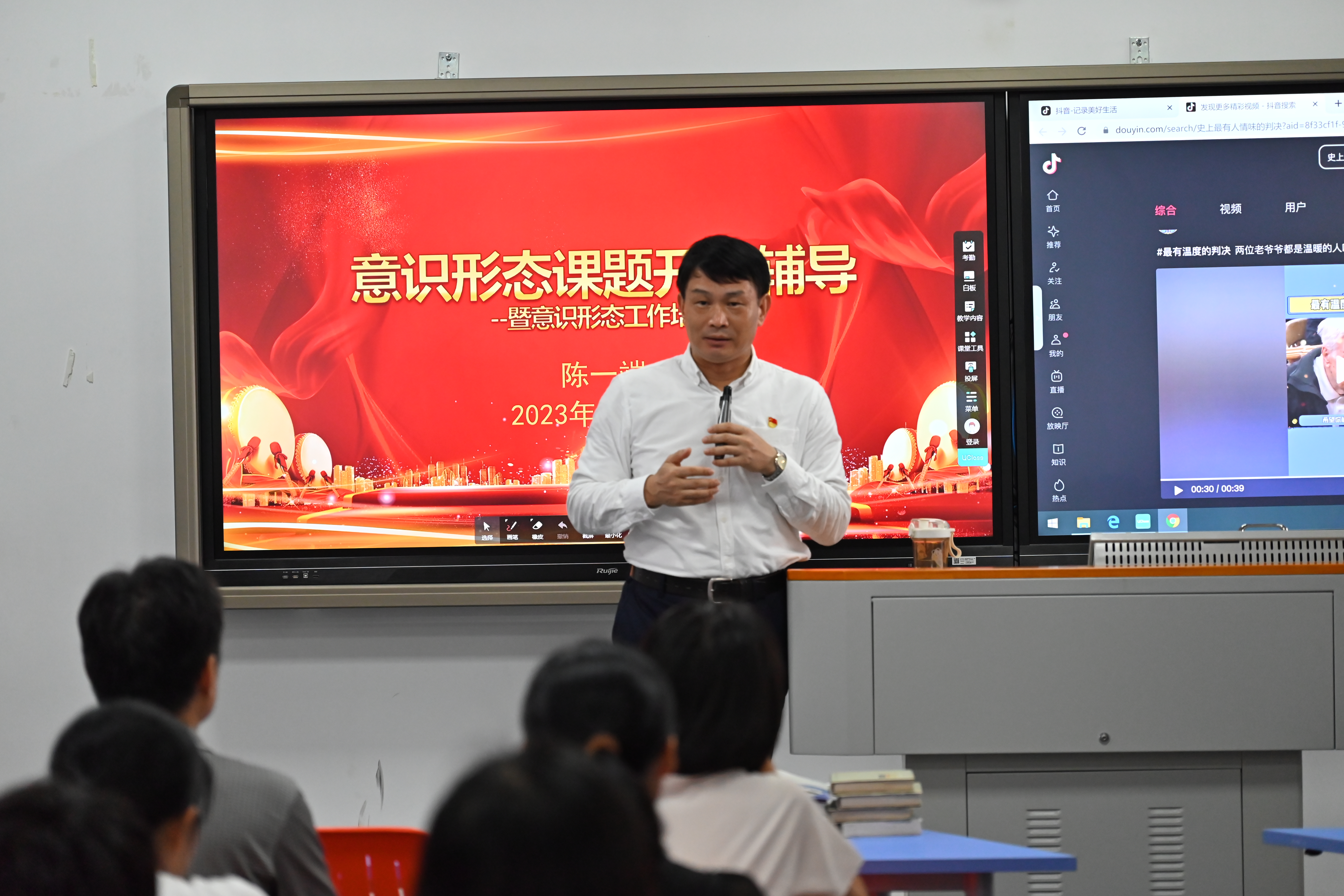 陈一端在报告中就什么是意识形态、意识形态工作的重要性、意识形态发展历程、怎样做好意识形态工作等方面作了系统的阐述。他指出,新时期学校应加强对意识形态工作的研究,注重将意识形态工作与立德树人有机结合,努力提高意识形态工作能力和工作水平,切实承担起培养社会主义建设者和接班人的历史使命。