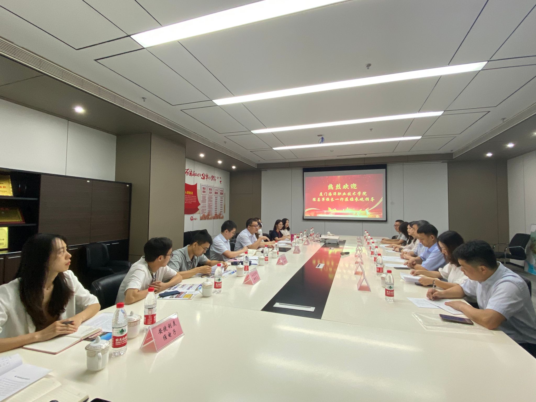 随后,陈昌萍一行到达厦门海洋半导体产业基地的管理机构—厦门海沧信息产业发展有限公司与多家企业代表座谈交流。座谈会上,厦门海沧信息产业发展有限公司相关负责人介绍了海沧半导体产业基地的基本情况,及基地内重点项目的现状及发展规划。校企双方就智能制造背景下的人才培养、产教融合等方面进行交流。