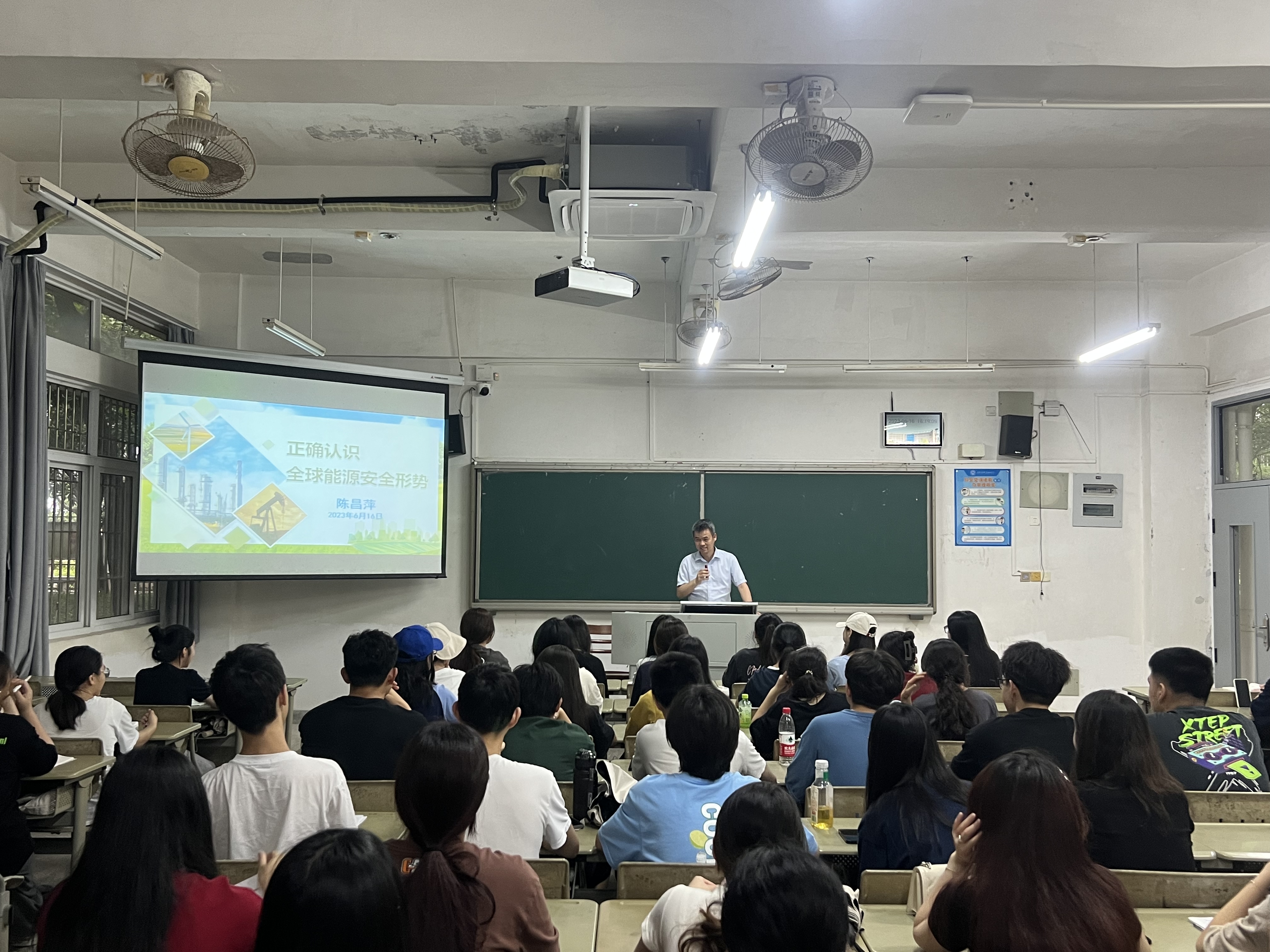 陈昌萍从自身研究领域、亲身经历与实践出发,讲述全球能源安全面临的严峻形势、不确定因素;共同学习领会习近平总书记关于碳达峰碳中和的重要论述,展示福建在新能源方面的代表企业和具体数据,讲清楚我国打赢能源安全主动战的战略举措;指出,我国要打赢能源安全主动战必须要全方位加强国际合作,持续推动我国能源消费、能源供给、能源技术和能源体制的革命。同时,勉励学生要夯实专业基本功,树立远大的奋斗目标,培养辩证思维能力,为建设更加清洁、美丽、繁荣、宜居的世界贡献中国力量。