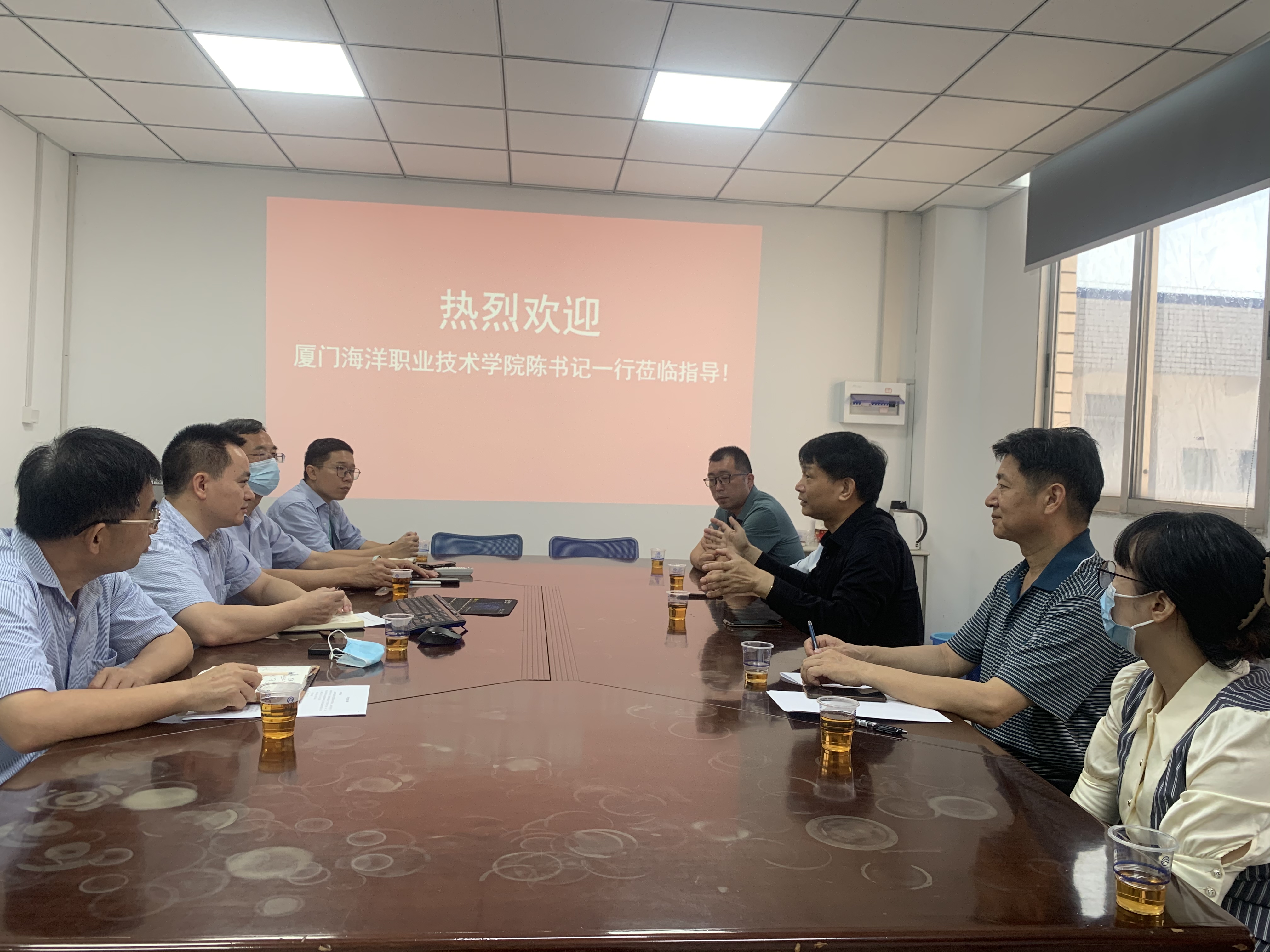 就业创业处和海洋机电学院相关人员陪同调研。