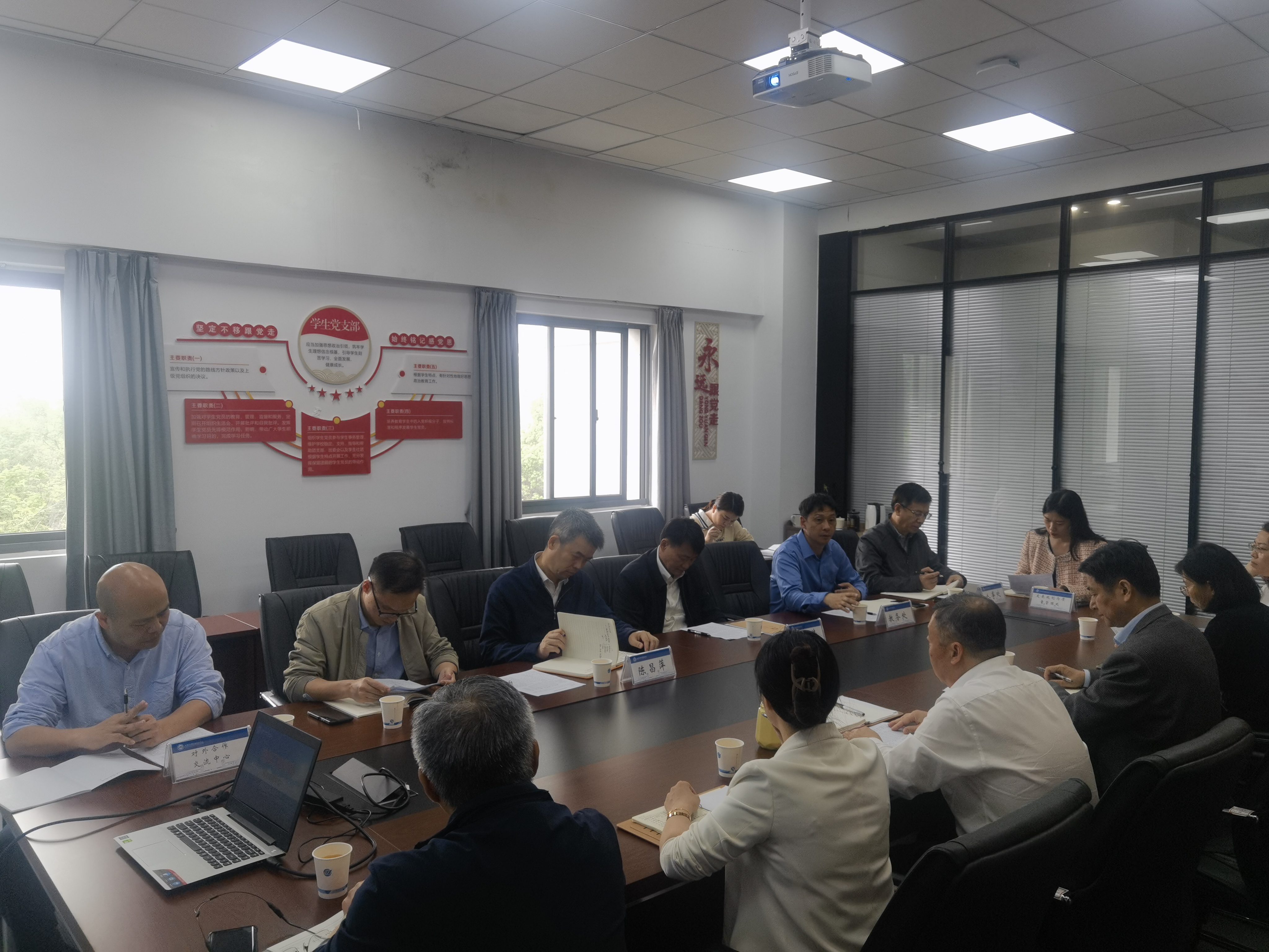党政办、发展规划与质量管理处、人事处、教务处、对外交流合作中心负责人陪同调研。