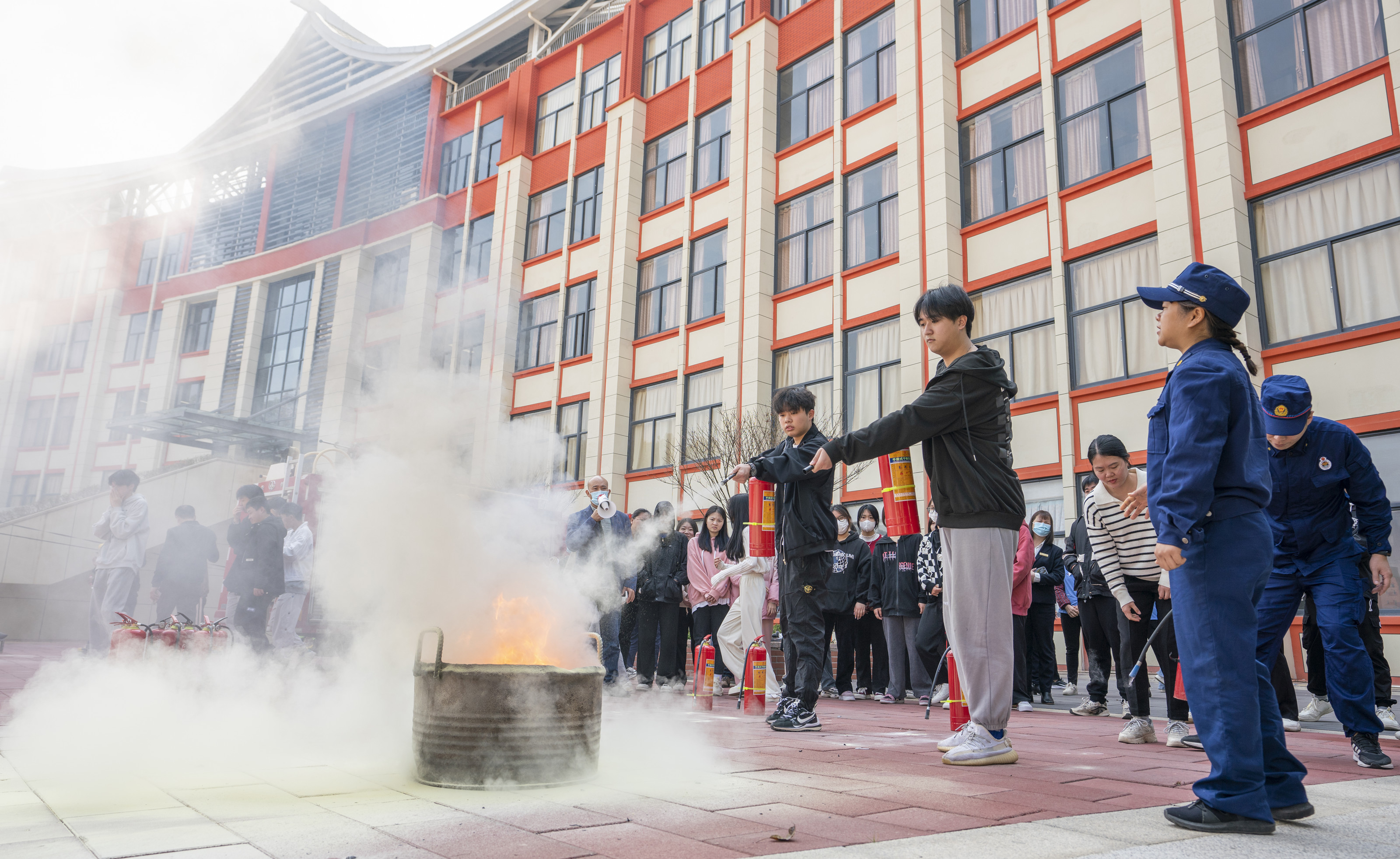 演练结束后,消防救援人员结合实例讲解了日常生活中该如何防火、发生火灾如何报警及逃生等消防知识,并向在场师生员工示范干粉灭火器的使用方法,指导学生进行操作,组织学校微型消防站工作人员展示消防水枪的使用等。