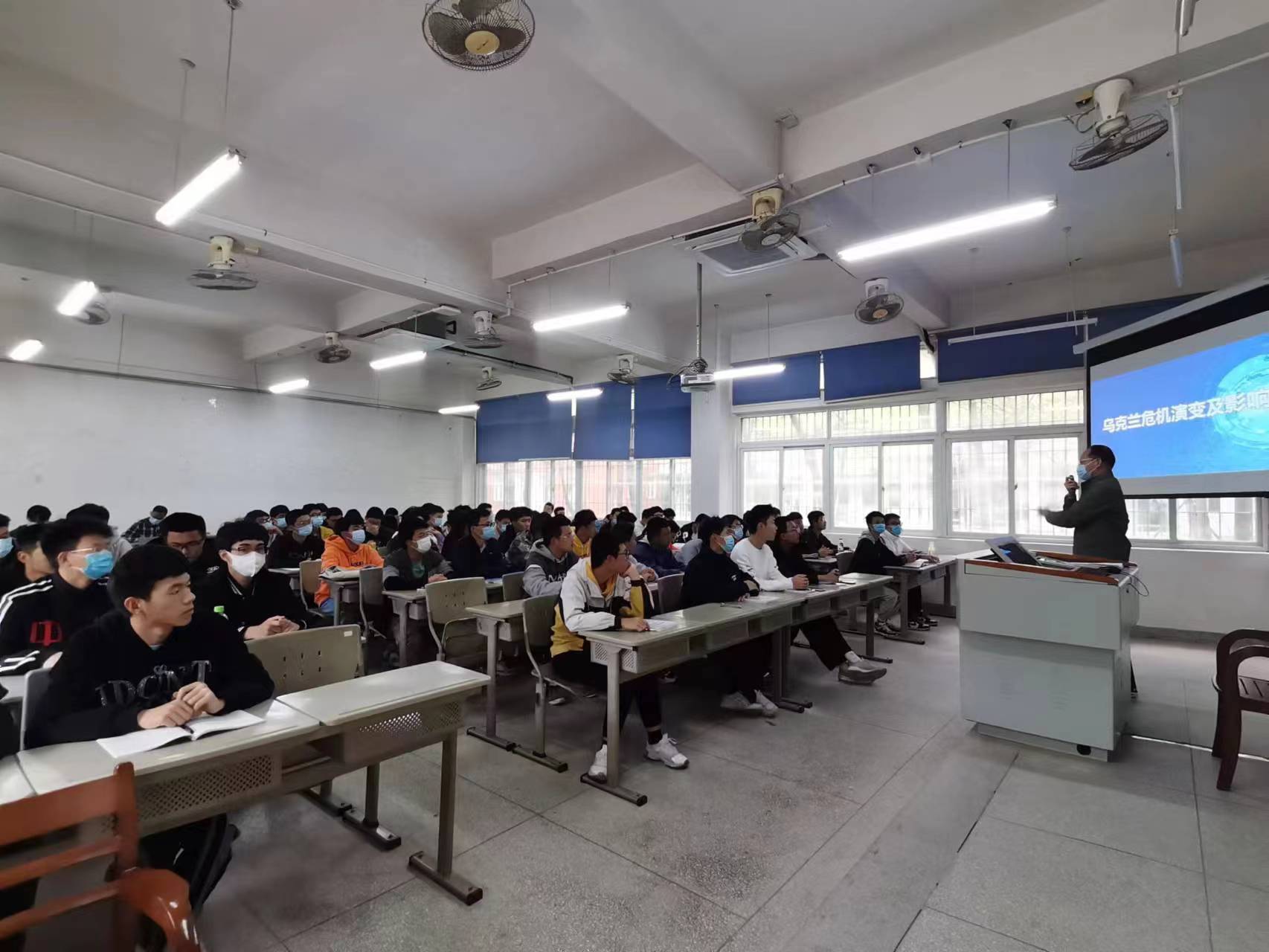 为引导同学们正确认识国际形势与发展变化,增强青年大学生的社会责任感,12月12日,党委委员、副院长马国玄走进课堂,以“乌克兰危机演变及影响”为主题,为机电5191、数控5191班的同学们讲授了一堂精彩的形势与政策课。