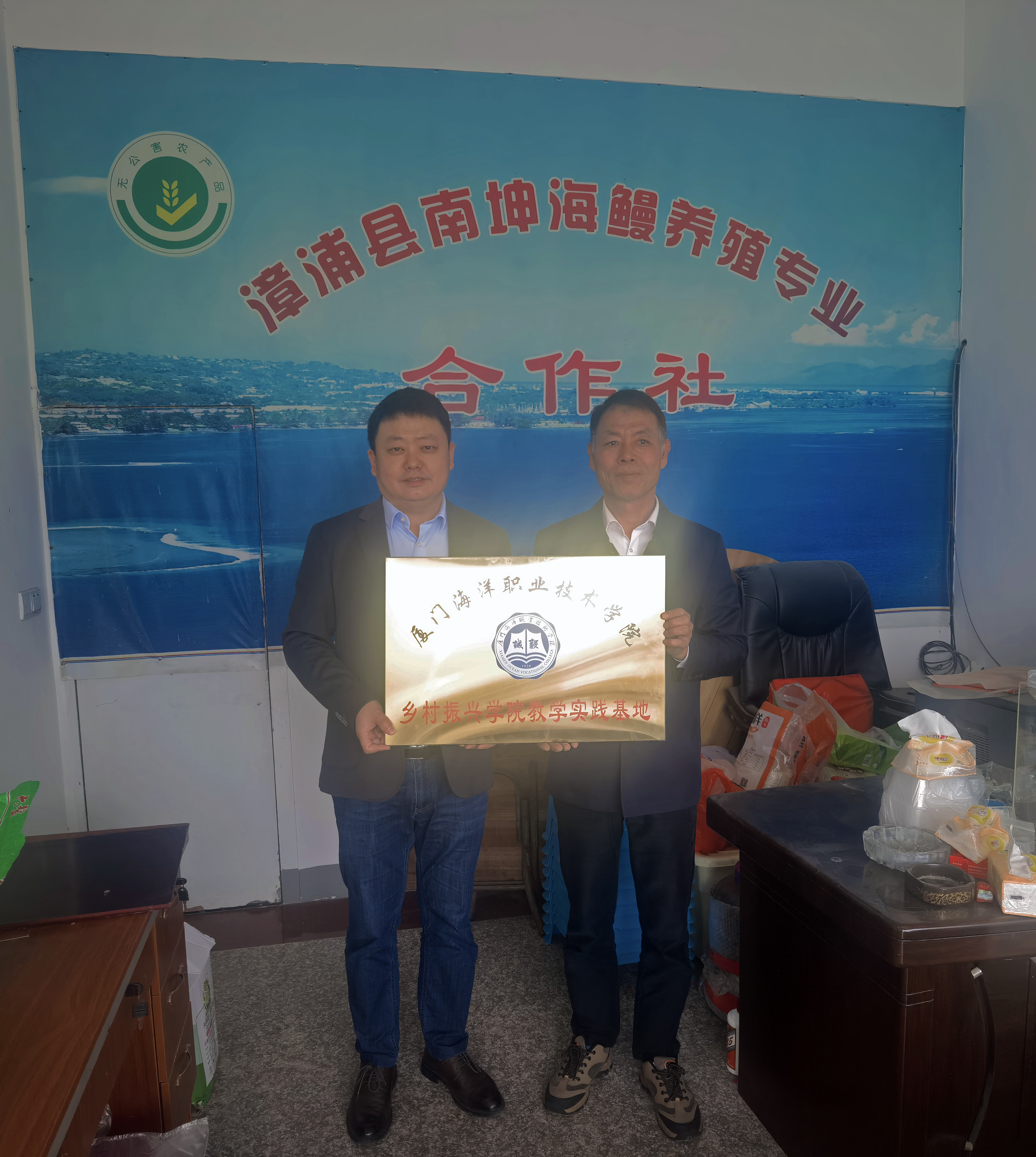 12月12日,乡村振兴学院院长赵胜东带队走访首届“全国十佳农民”陈建坤,并向其负责的南坤海鳗养殖专业合作社授予“乡村振兴学院教学实践基地”牌匾。